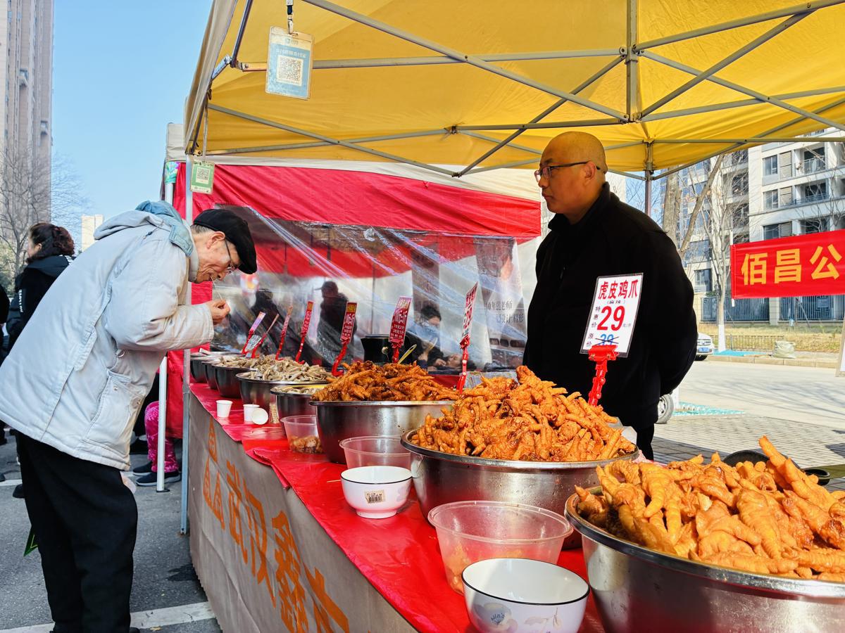 活动现场的年货惠民专区,热闹非凡、品类齐全,汇聚了卤菜、黄陂三鲜、腊鱼腊肉等极具武汉本地特色的风味美食,还有蜂蜜、干菜、自制酱料等农户直供的原生态土特产,全方位满足居民采购年货的多样化需求。
