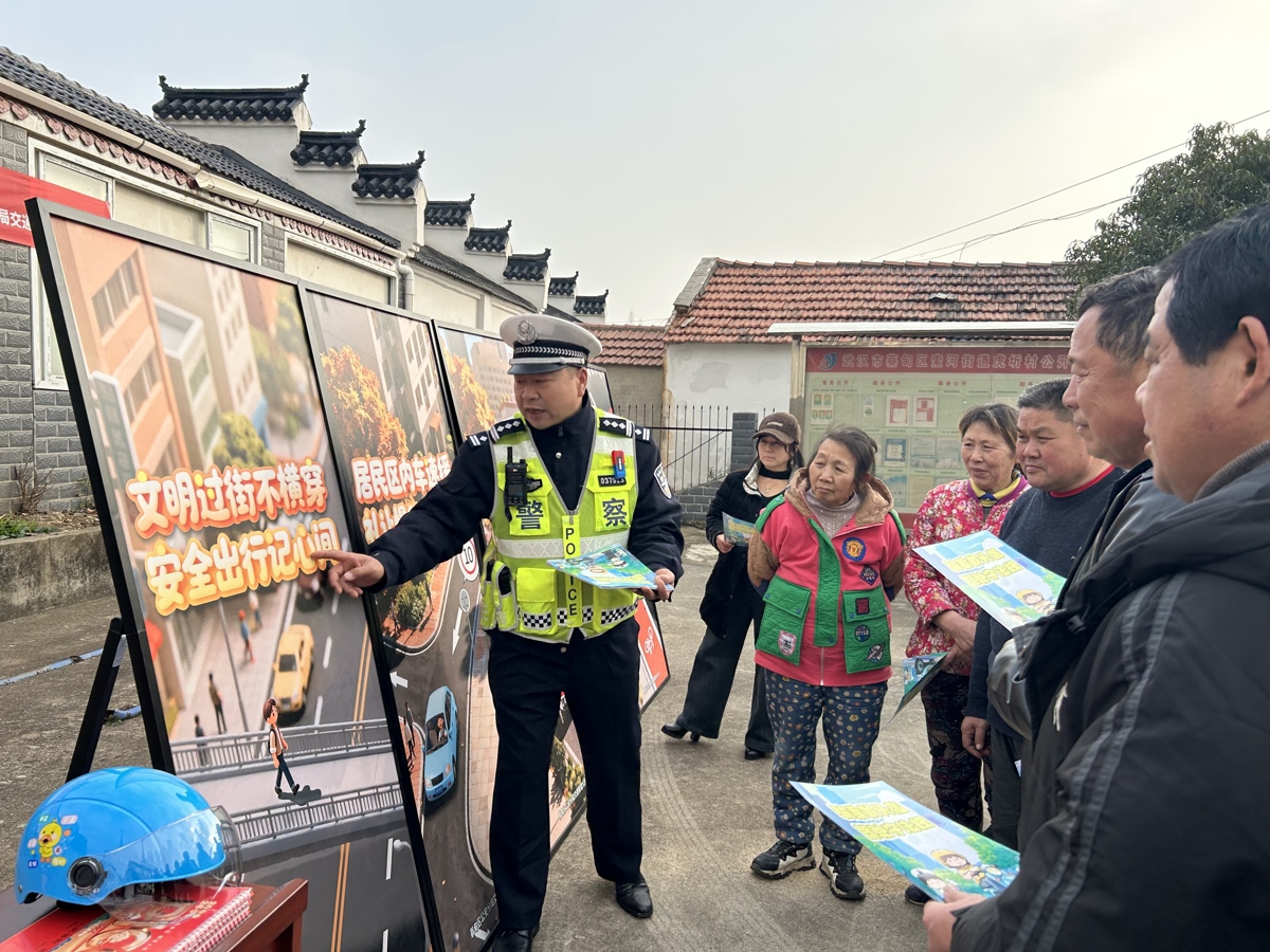 在村委会广场的宣传现场,内容丰富、形式生动的交通安全展板前围满了驻足观看的村民。武汉市公安局蔡甸区分局交通管理大队四中队副中队长胡阮俊结合冬季农村道路出行特点,用亲切易懂的方言,深入浅出地讲解了典型事故案例,重点剖析了骑乘电动车不佩戴安全头盔、农用车违法载人、酒驾醉驾、乘坐超员车辆等常见违法行为的严重危害,并积极传递“车让人、人守规”“相互礼让、路畅人安”的文明出行理念。民警胡阮俊还现场演示了安全头盔的正确佩戴方法,并将一批安全头盔赠送给村民,再三叮嘱:“头盔一戴,安全常在!出门骑车,可别忘了戴好咱们的安全帽。”