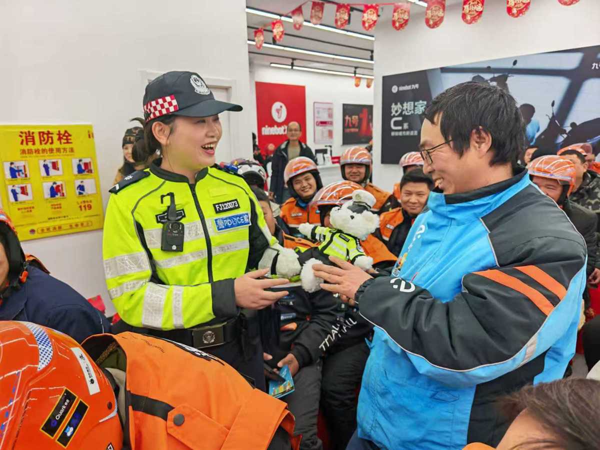 2月4日下午,江夏区分局交通管理大队走进武汉熊廷弼路九号店,为70余名外卖骑手送上一堂生动实用的交通安全课,将安全祝福与新春温暖送到骑手身边。