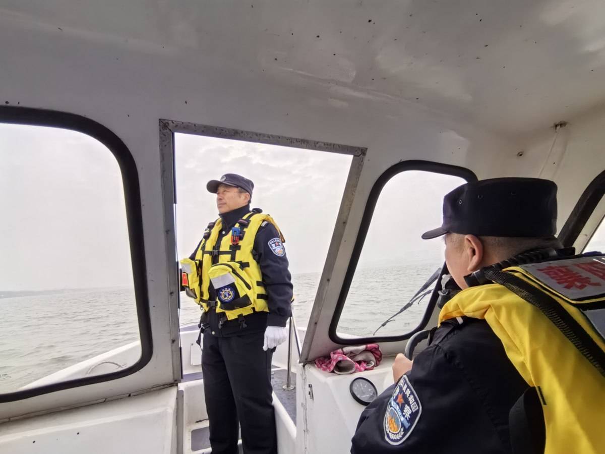 2月4日早上9时许,襄阳市公安局水上分局鱼梁洲派出所副所长吕峻和辅警宋会强驾驶快艇出发巡江。