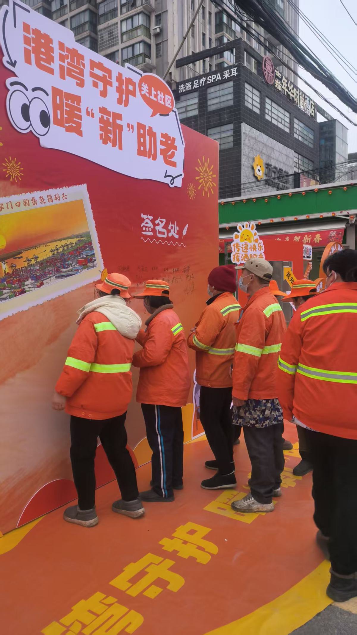 新业态志愿者代表分享服务初心与承诺,展现出融入社区、贡献力量的蓬勃朝气;集体签约环节,结对帮扶的“两新”伙伴郑重立下“关爱长者,守护安全,共建港湾”的誓言,将社会责任转化为实际行动。爱心小分队携带爱心餐食、吉祥福字及安全资料上门探访高龄独居老人,实现“送餐+宣安全+解民忧”一体化服务;港口周边企业提供物资支持,保障活动顺利开展。现场“趣味安全知识翻翻乐”环节互动热烈,30道实用题目让参与者在轻松氛围中巩固一氧化碳防护、禁鞭规定等知识,有效提升安全防范与社区共建意识,为社区治理注入鲜活动能。