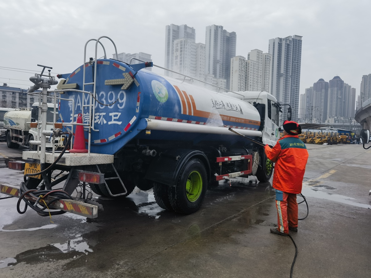 给环卫车“洗澡” 卢成汉摄