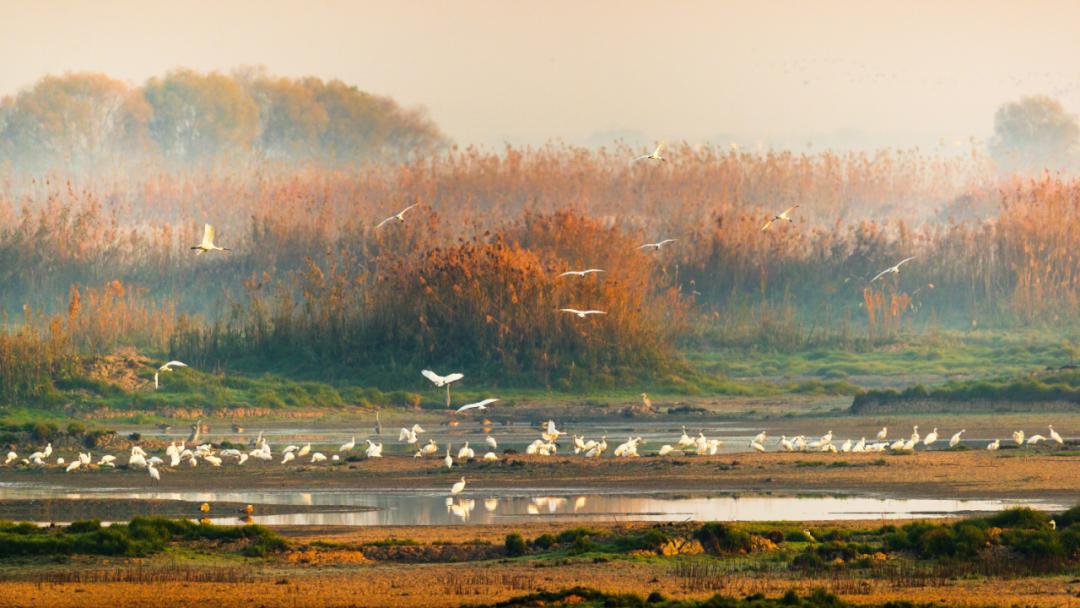 沉湖国际重要湿地位于武汉市蔡甸区西南部,是东亚—澳大利西亚候鸟迁飞通道上的关键站点,总面积约17.4万亩。这里地貌多样,孕育了极其丰富的生物多样性,记录鸟类达301种,其中国家一级、二级保护鸟类分别有18种和56种。高峰期有逾11万只候鸟在此栖息,被誉为“湿地水禽遗传基因保存库”。
