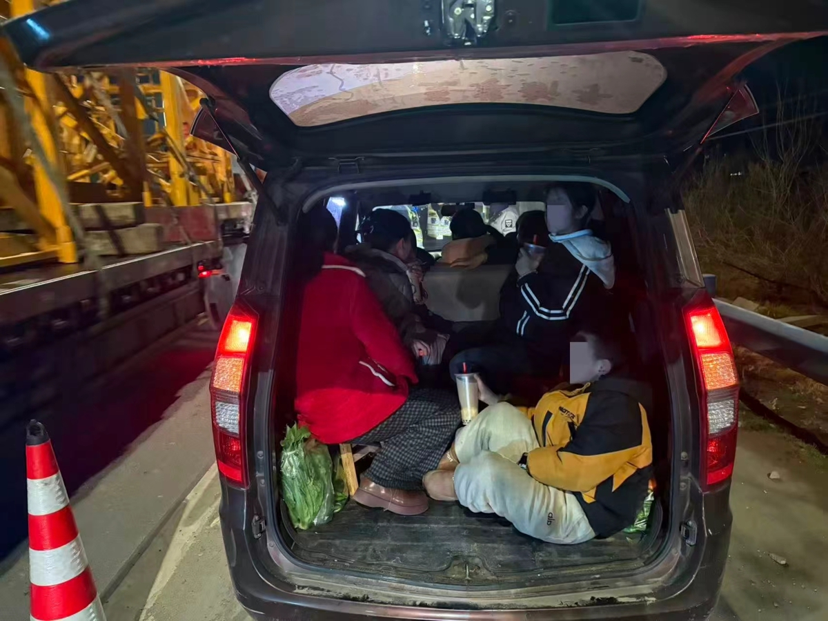 当日19时46分,武汉市公安局蔡甸区分局交通管理大队六中队副中队长陈宇、民警刘国杰对一辆号牌为鄂A9xxx2小型普通客车进行例行检查时,发现驾驶员张某吹气时神色极其不自然,当民警检查其驾驶证、行驶证时更是满面心虚。民警看向车后方,透过半开的车窗发现后排座椅上挤满了人,疑似严重超员,遂让驾驶员张某靠边停车接受检查。随着后车门打开,民警发现核载5人的车里,大大小小的塞进了9个人,实在坐不下的小孩则挤在后备箱里的小板凳上,还有一个干脆“席地而坐”,超员率高达80%。