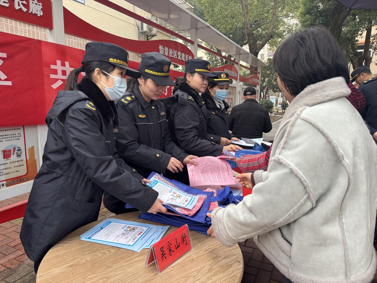 2月6日,武汉市东西湖区吴家山街道怡景社区海景花园小区里格外热闹。该区城管综合执法大队联合吴家山街道综合执法中心把服务窗口直接搬到了居民家门口,一场“城市管理进社区 共治共享美好生活”的活动,让政策宣传变成了邻里间的暖心对话。