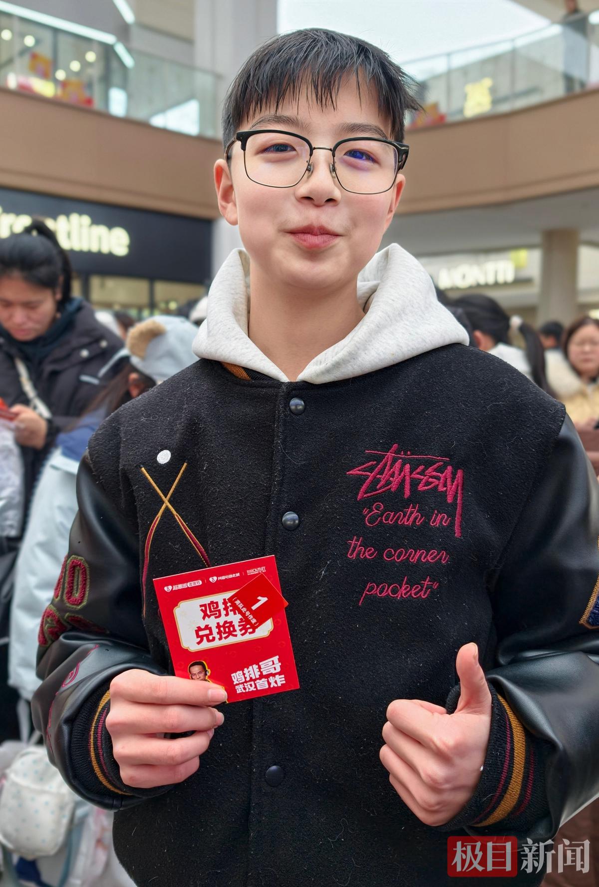 16岁小杨是安徽阜阳人,他于2月4日来到武汉,当天在江汉路玩耍时从网上看到“鸡排哥”要来武汉的新闻,便慕名而来,他的愿望是想吃到“鸡排哥”亲手炸的鸡排。小杨原计划6日晚上离开武汉,但为了“鸡排哥”决定在武汉多待一天再离开。