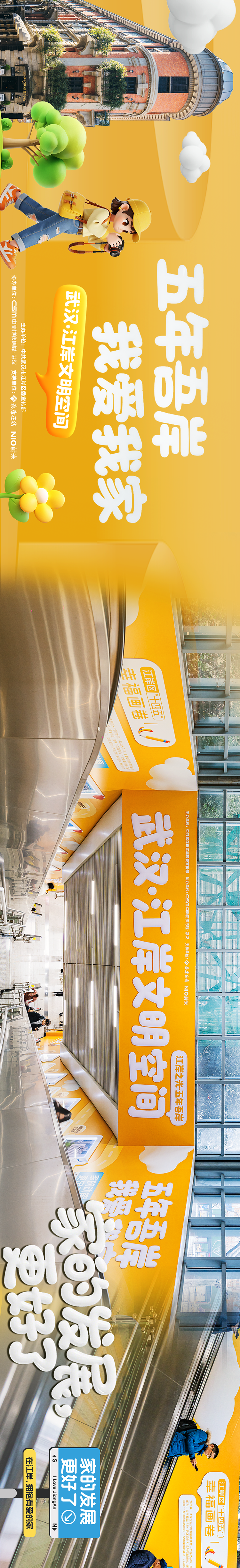 2026年是“十五五”开局之年,“江岸之光·文明空间”以“五年吾岸 我爱我家”为主题,将江岸“十四五”期间的跨越式发展转化为乘客触手可及的“家常话”,用“家的发展,更好了”“家的动能,更足了”“家的窗外,更美了”“家的烟火,更旺了”“家的未来,更稳了”五大篇章,串联起江岸“家”门口的美好生活。全景式呈现江岸的发展成果,让市民在穿梭地铁的日常里沉浸式读懂吾岸答卷。