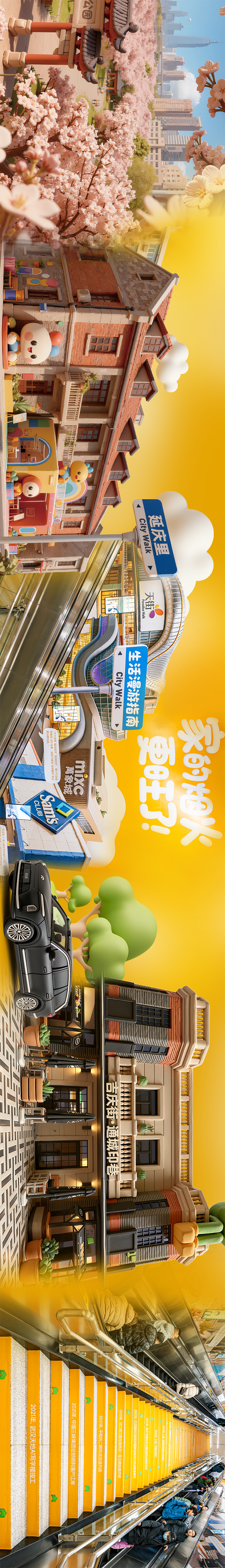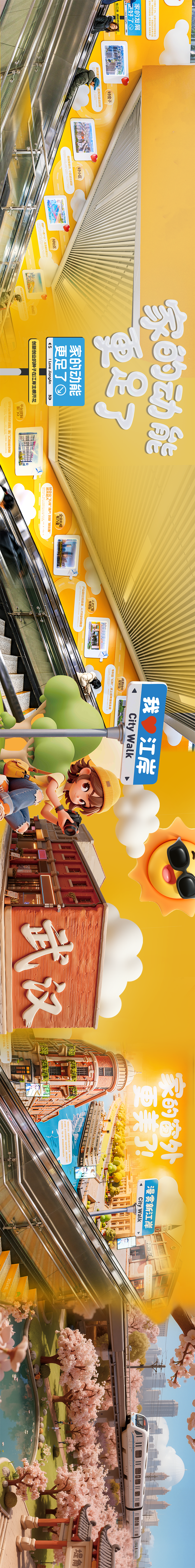 空间打破传统摄影图片的表现形式,以非遗“武汉面塑”为灵感,通过3D数字技术将巴公房子、咸安坊等江岸地标“捏”成一系列软萌治愈的艺术画面,江岸变得软萌、治愈,趣味十足。
