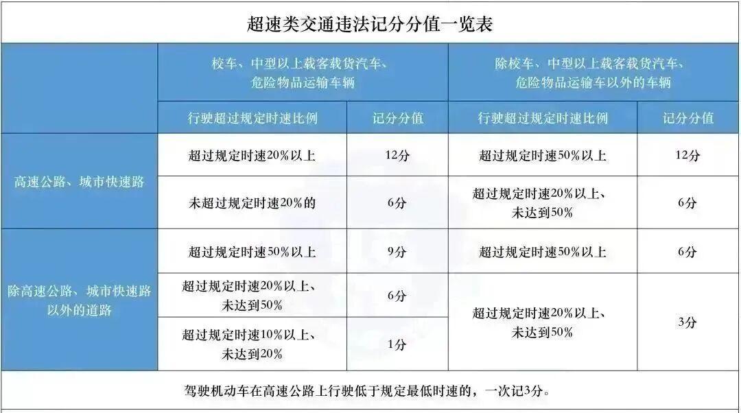 超速行驶相关记分标准: