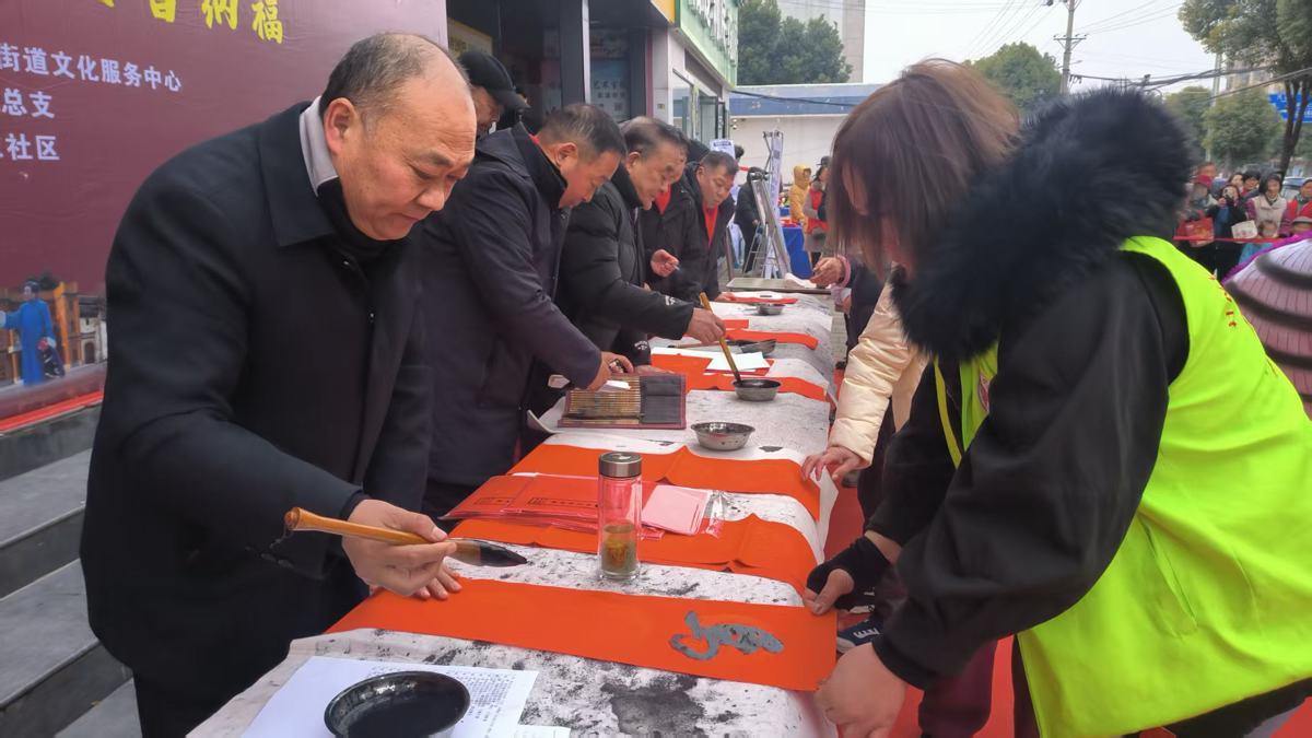 展演落幕,写春联送祝福环节温情接续,本土书法家挥毫泼墨,隶、楷、行等多体春联传递新春期许。与此同时,美食年货区的老味腊货、怀旧小吃,非遗展示区的烙画马年图案、衍纸作品及潘氏中医义诊,公益便民服务区的交通安全宣传、反诈科普、口腔眼科便民服务同步开放,一站式满足居民文化、消费与生活需求。