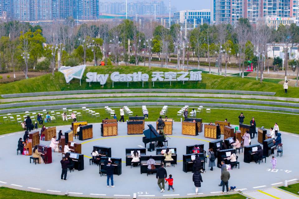 2月7日下午,悠扬的琴声在江夏中央大公园上空回荡。江夏新晋文旅地标“天空之城”宽阔的停机坪上,一场别开生面的公益钢琴群奏会正温情上演,为即将到来的马年新春奏响了悦耳的前奏。