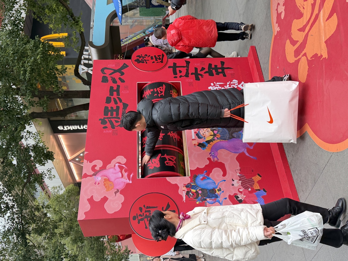 此外,庙会同步推出多项促消费举措,为新春消费添实惠、增惊喜。步行街内多台印刻庙会专属图案的“地图打印机”互动装置已就位,游客打印精美导览地图后,按指引打卡庙会特色点位与商户,即可解锁专属购物折扣。据江汉路步行街商会负责人介绍,本次促消费活动春节前正式启动,超五十家街区商户参与,折扣力度低至六至八折,让市民游客逛得尽兴、买得实惠。
