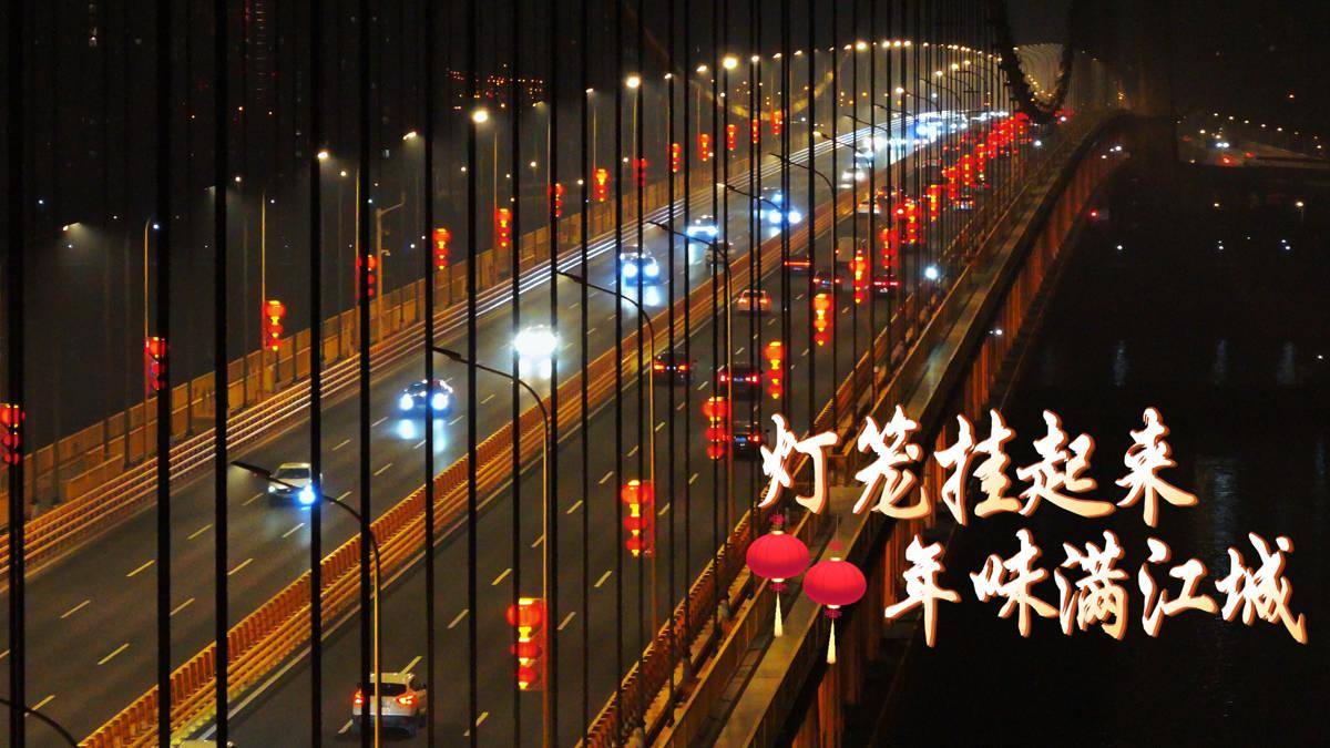 杨泗港长江大桥挂满红灯笼