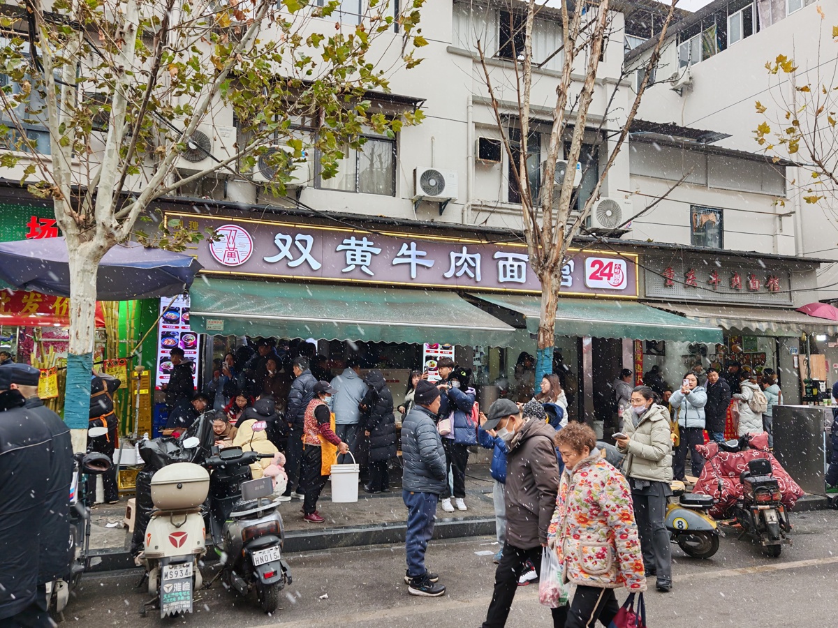 “我们第一次来武汉,早就做好了美食攻略,第一站就选在山海关路。”广东游客刘漓笑着告诉记者,她和五位朋友头一天晚上抵汉,特意选择住在附近,今早便开启了一场“特种兵”式的寻味之旅。“本来只是冲着美食来的,没想到还撞上一场雪,感觉像是武汉送给我们的一份礼物——在这个飘雪的早晨,热干面、糊汤粉都好像更香了。”
