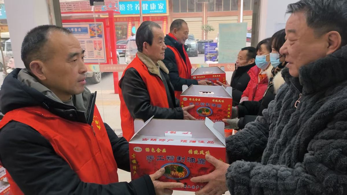 在高潮社区工作人员的协助下,志愿者们将一份份饱含暖意的物资送到群众手中,与老人们亲切交谈,询问身体状况与生活需求,叮嘱他们注意防寒保暖,安心迎接新春佳节。