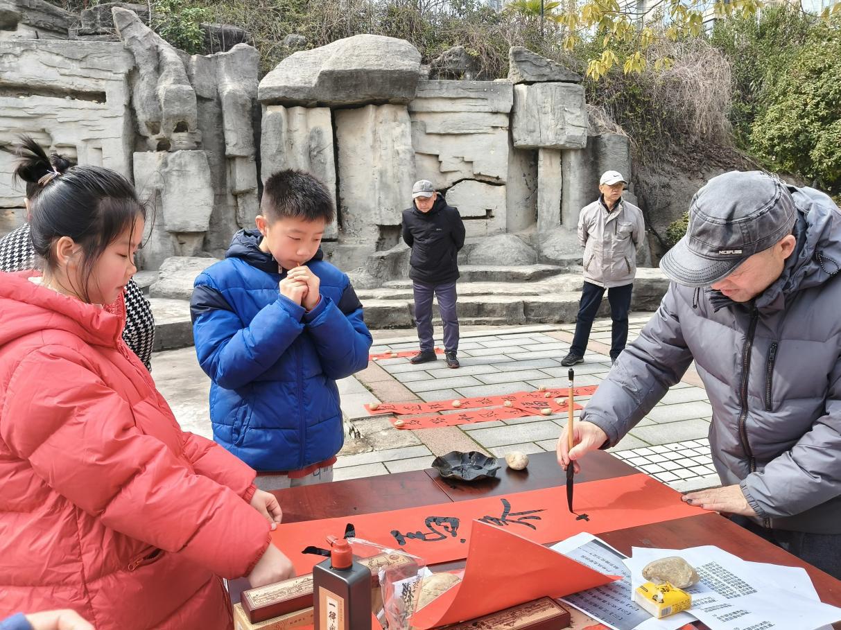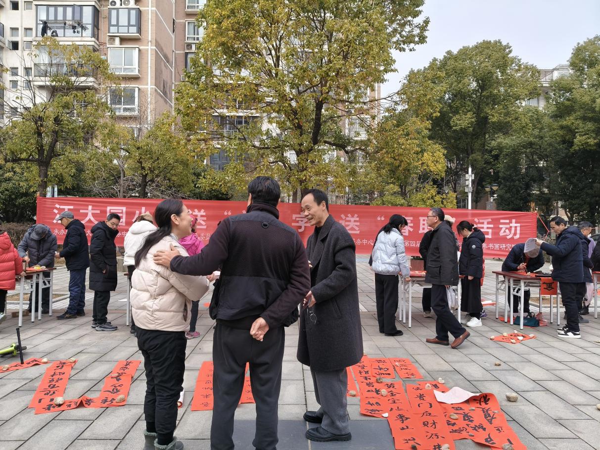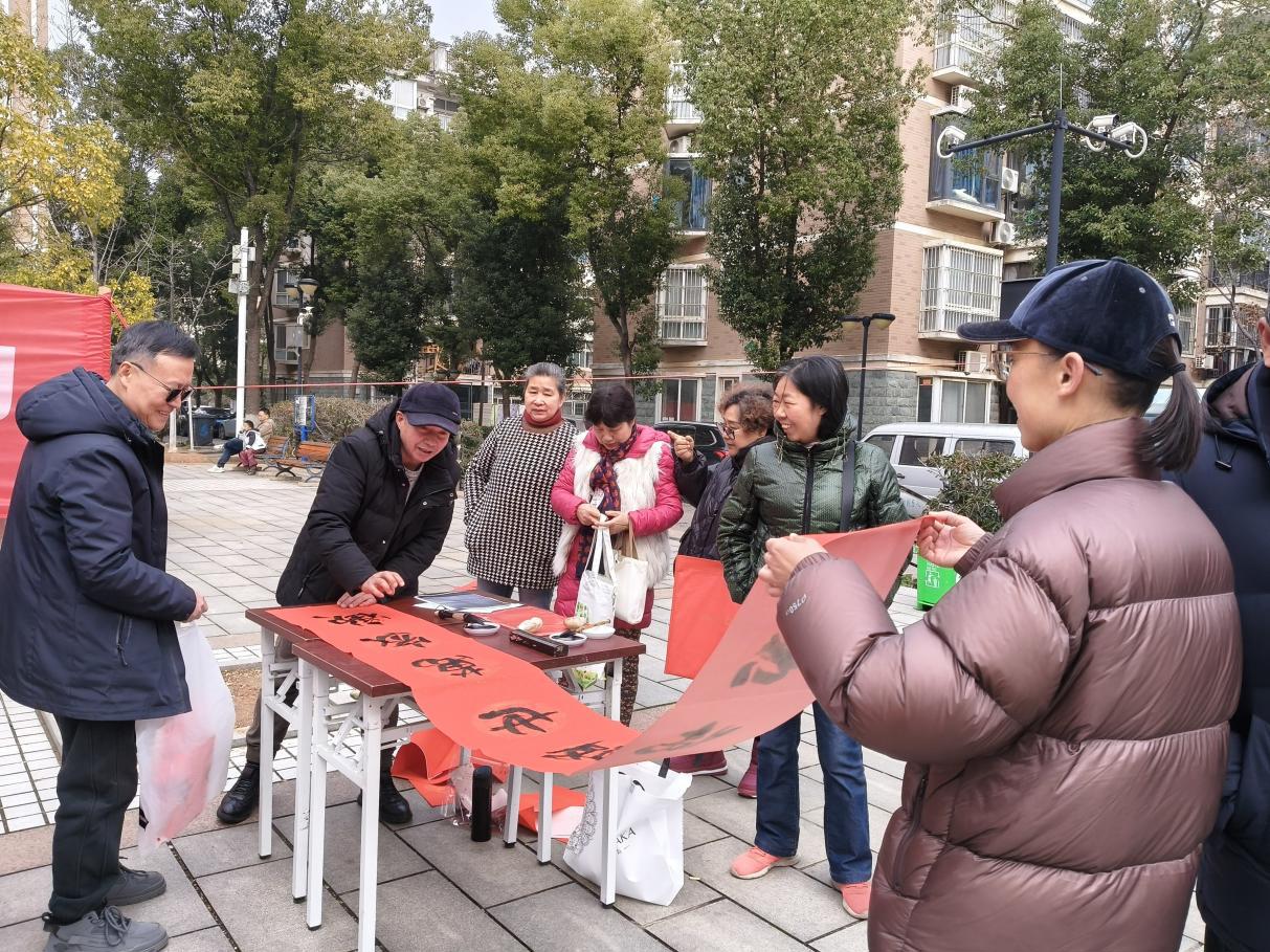 2月7日下午,武汉经开区沌阳街道江大园小区假山广场年味浓郁、暖意融融。由江大园社区、江大园物业中心、江大园小区业主委员会、江汉大学老年书画研究院、江大园社区居家养老服务中心联合举办的“迎新春送福送健康”新时代文明实践便民活动温情开展,以笔墨传福、以服务暖心,吸引了众多居民踊跃参与。