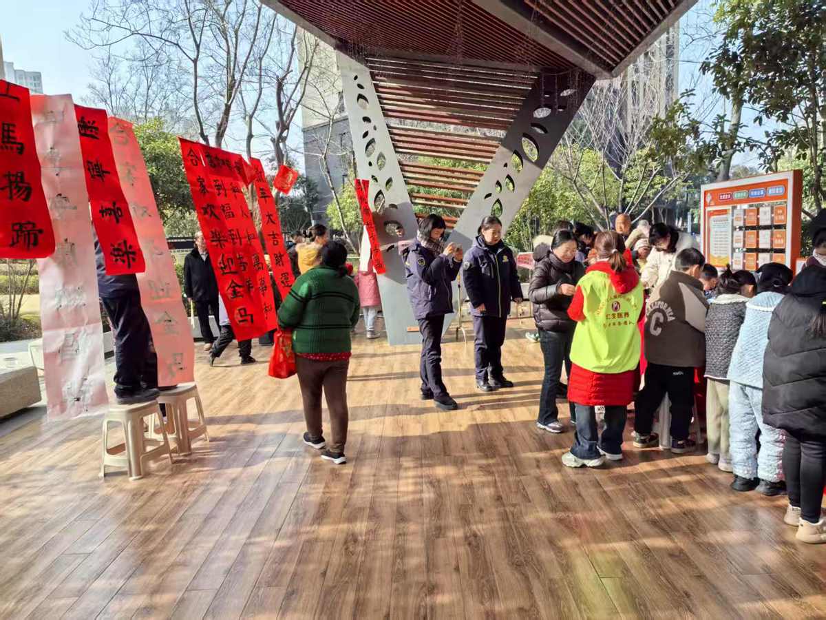 腊月寒意未消,社区年味已浓。近日,武汉长江新区阳逻街道武矶头社区联合社区老年人服务中心、物业公司,在社区文化广场举办“墨香四溢迎新春,邻里同乐年味浓”新春游园活动。现场欢声笑语不绝于耳,居民们齐聚一堂,在丰富多彩的传统民俗活动中,提前感受新春的暖意与喜悦。