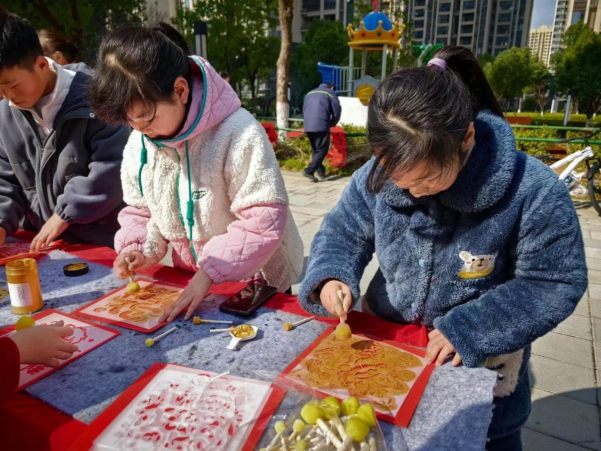 “马到成功”DIY拓印区,成为亲子互动的欢乐天地。小朋友们手持小马图样的拓印工具,在家长的细心指导下,轻轻按压在红纸上,一匹匹灵动鲜活的小马跃然纸上,既承载着马年吉祥的美好寓意,也充满了童趣。家长与孩子默契配合,欢声笑语间,温馨的亲子氛围感染着现场每一个人。