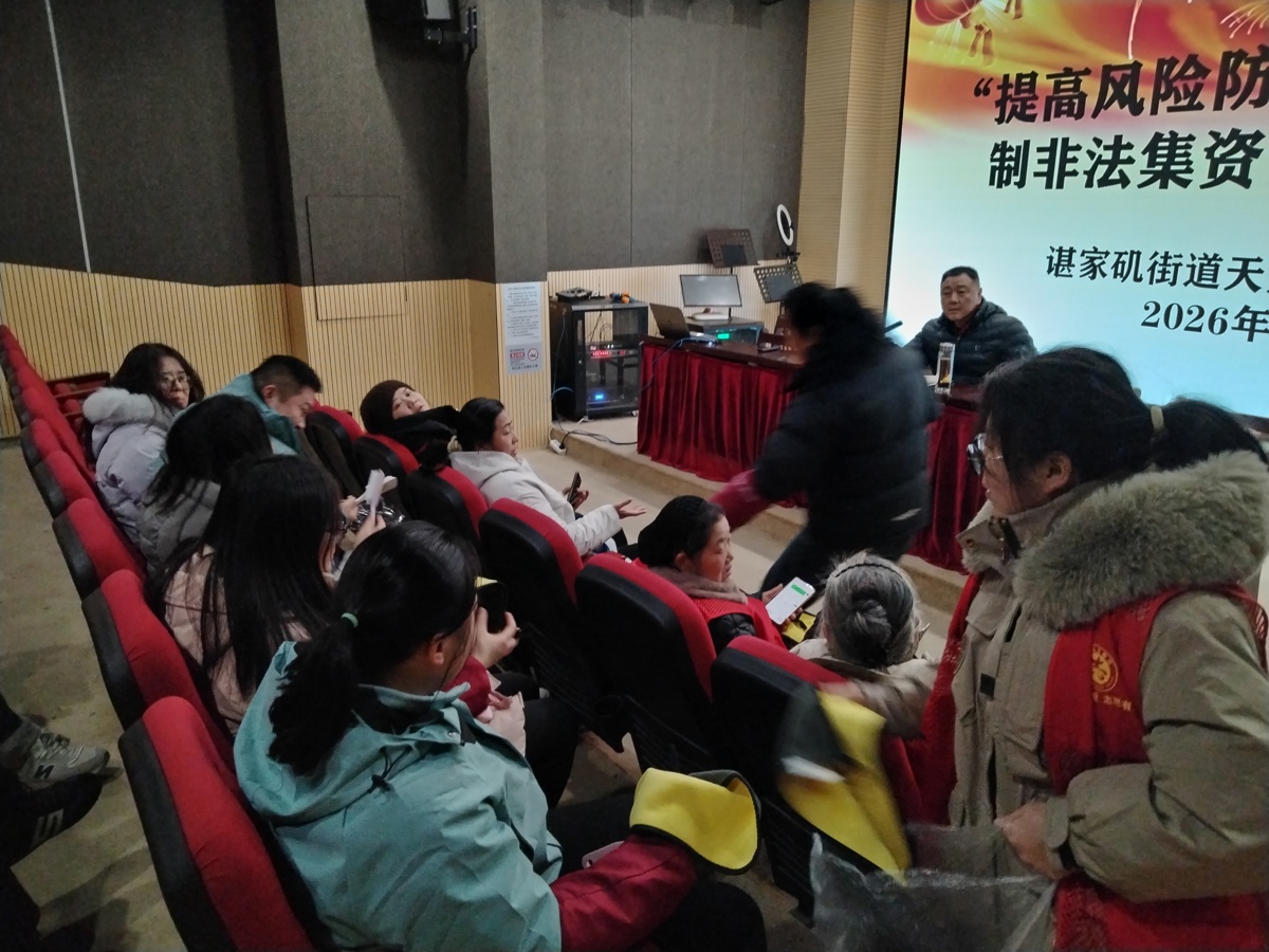 为进一步提升社区居民金融风险防范意识,有效遏制非法集资活动在社区滋生蔓延,切实守护居民“钱袋子”安全,2月9日下午,武汉长江新区天兴花园社区举办“提高风险防范能力、自觉抵制非法集资”主题宣传讲座。本次讲座由社区联合辖区派出所,吸引了近百名居民到场参与。