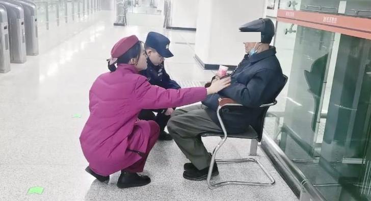 2024年3月15日,王硕在站厅巡视时,发现一名70多岁的爹爹一直在站厅内徘徊,不知道该去哪里。她上前询问得知老人迷路了。她立刻联系民警寻找家属,又搬来椅子陪老人聊天,直到家人匆匆赶来。