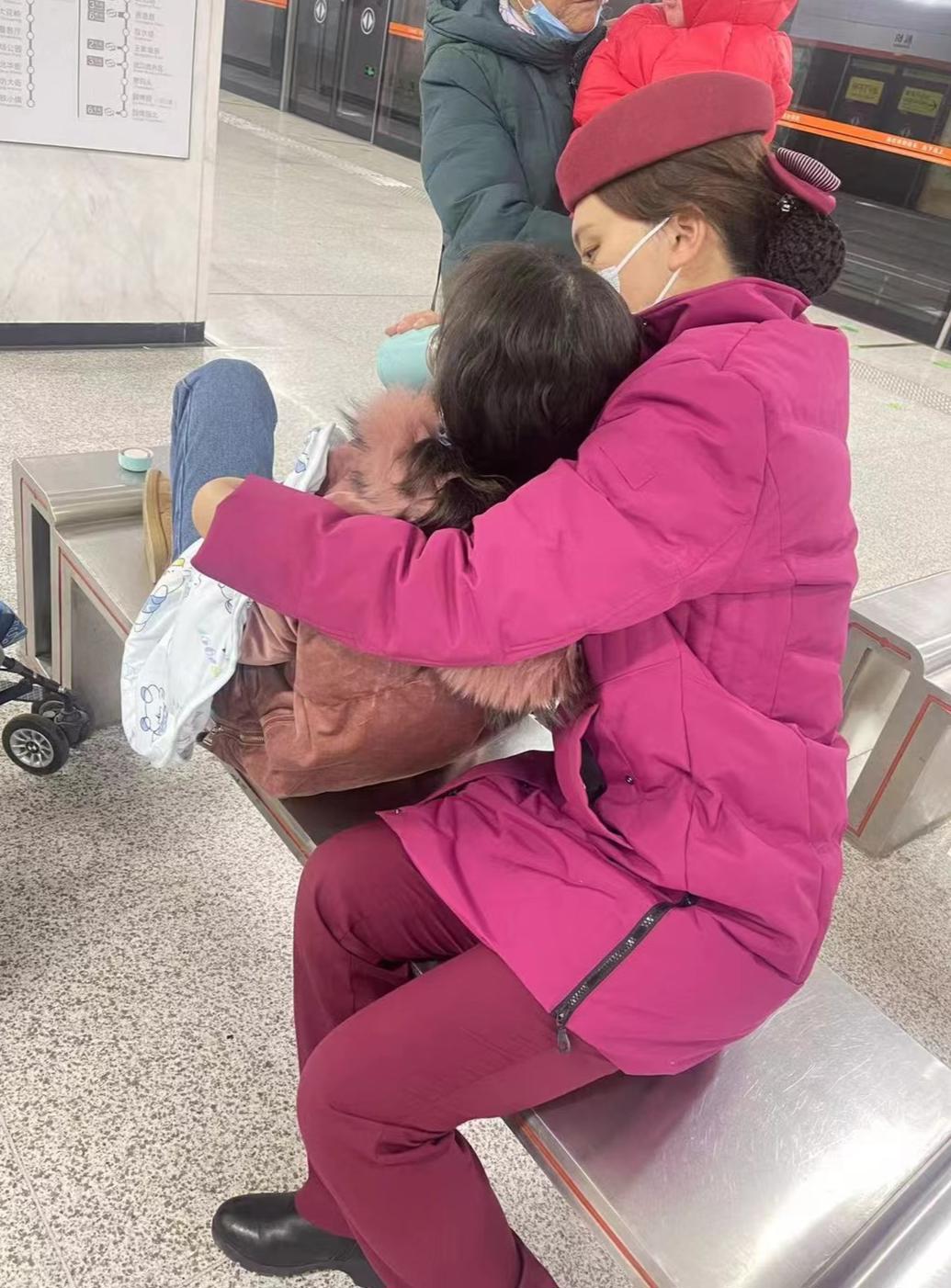 2024年11月,一名年轻的宝妈带着婴儿和母亲准备去医院,结果宝妈突然在站厅内晕倒了,王硕赶紧将女子扶起来,并找来热水和糖果。交谈中得知,是新生儿频繁夜醒让妈妈疲惫不堪。王硕一边安慰她,一边介绍自己的育儿经验:“试试白天多陪宝宝玩,调整他的睡眠节奏,把生物钟调整过来,大人就能轻松不少。”贴心的宽慰让虚弱的妈妈露出了笑容。