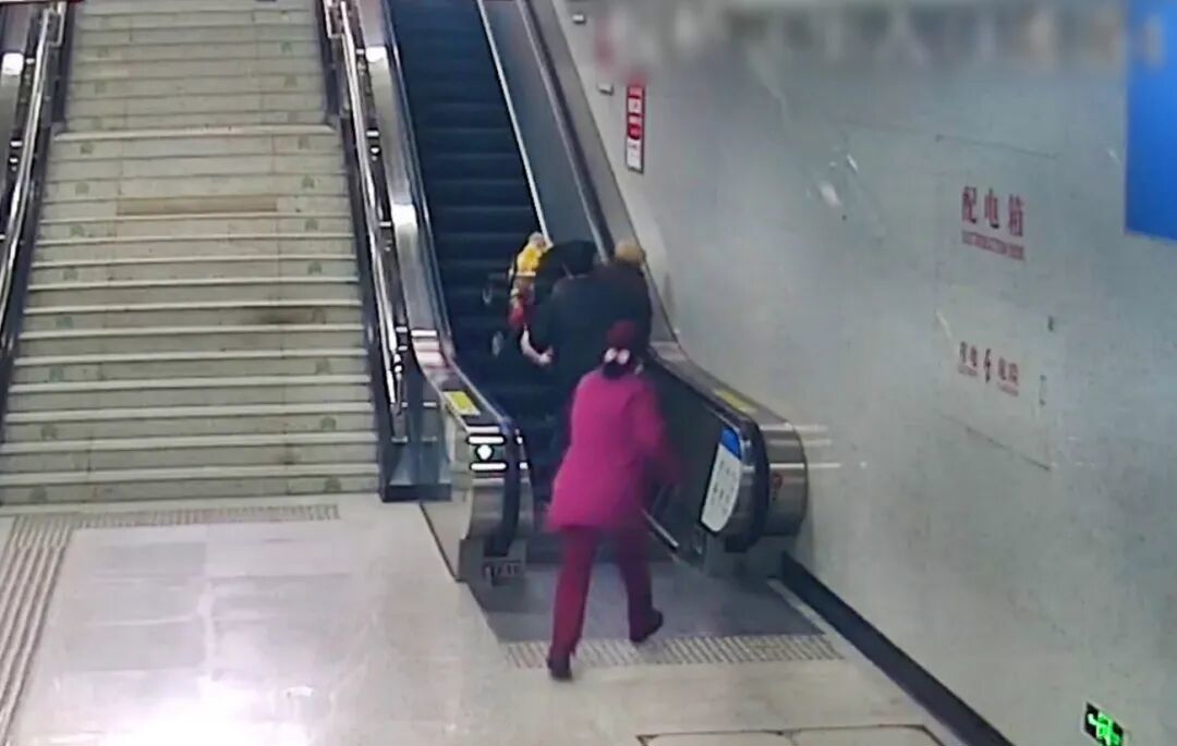 冲上扶梯、调整步伐、用身体支撑、清晰指令……一系列动作在急促中透着专业的沉稳。男乘客怀中的幼儿全程安然熟睡,仿佛只是经历了一场微小的颠簸。从惊险发生到化险为夷,不过7秒。“要不是她反应那么快,我们带着孩子摔下去,后果不敢想。”事后,乘客心有余悸,连连道谢。
