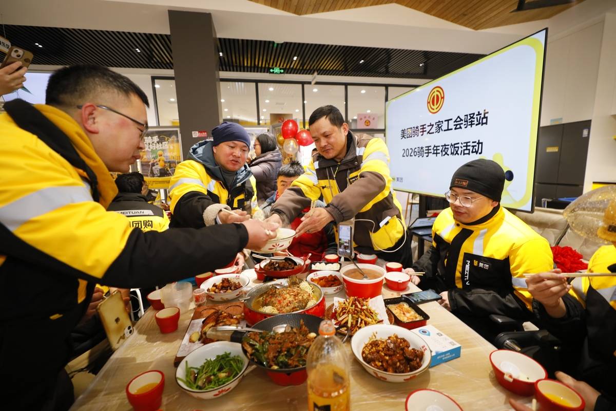 放下外卖箱,端起团圆碗!2月9日下午,美团武汉光谷工会驿站里格外热闹。30多位外卖骑手暂时停下奔波的脚步,聚在一起擀皮、调馅、包饺子。驿站变成了临时的“家”,没有催单声,只有歌声、笑声和饺子的热气一起蒸腾。这场特别的年夜饭,没有订单提醒,只有满满的“家”味。美团武汉光谷工会驿站负责人表示,就想用这顿团圆饭,谢谢骑手们一年的风雨无阻和辛勤付出,愿他们在驿站感受到家一般的温暖。(湖北日报全媒记者 李溪 通讯员 杨健 摄)