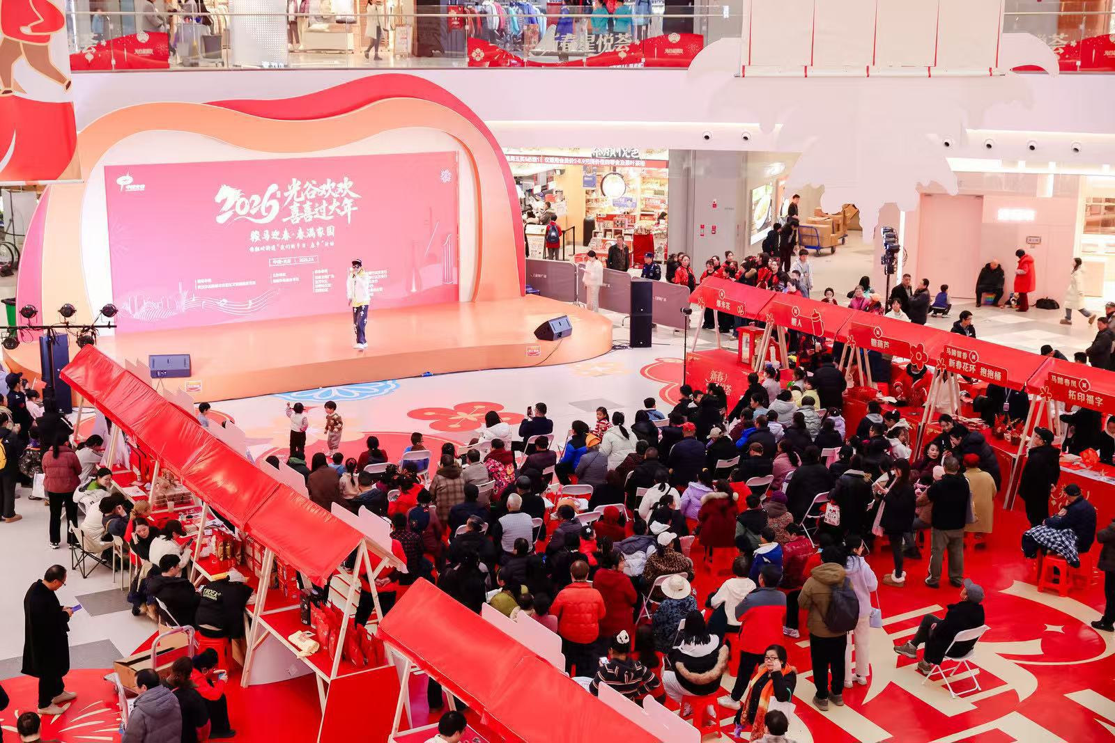 游园会现场,伟星光谷星悦广场完成了从购物中心到“社区客厅”的角色转变。春联书写区、马年手作区、趣味游戏区、美食便民区四大板块,以文化为媒、以服务为核的社区融入实践:书法达人挥毫送春联,是商业空间承载文化传承;义诊、就业咨询进驻商场,是让便利服务贴近居民生活;合唱团《佛祖岭的光》温暖唱响,是邻里情感在商业场景的自发凝聚。