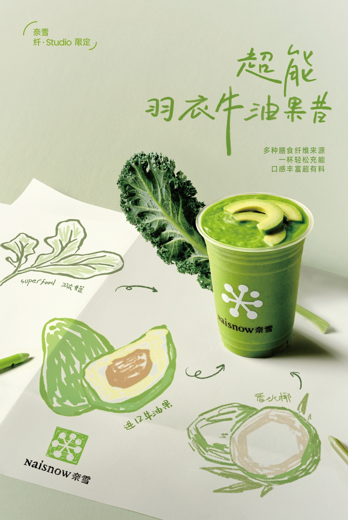 其中,“低GI&多纤果蔬茶系列”推出多纤·瘦瘦小绿瓶、多纤·超C小橙瓶、多纤·焕新小红瓶,通过科学食材搭配降低升糖指数,搭配奈雪经典茶底,实现“低GI慢升糖+蔬果纤维”双重buff,适配控糖人群日常需求。“多纤蔬果昔”系列包含超能·羽衣牛油果昔、醒味·薄荷青苹果昔、活力·姜黄凤梨果昔,采用鲜果鲜榨工艺,保留丰富蔬果纤维,主打“多种膳食纤维来源,一杯轻松充能”,羽衣甘蓝、牛油果等超级食材的加入,让健康属性可感可知。