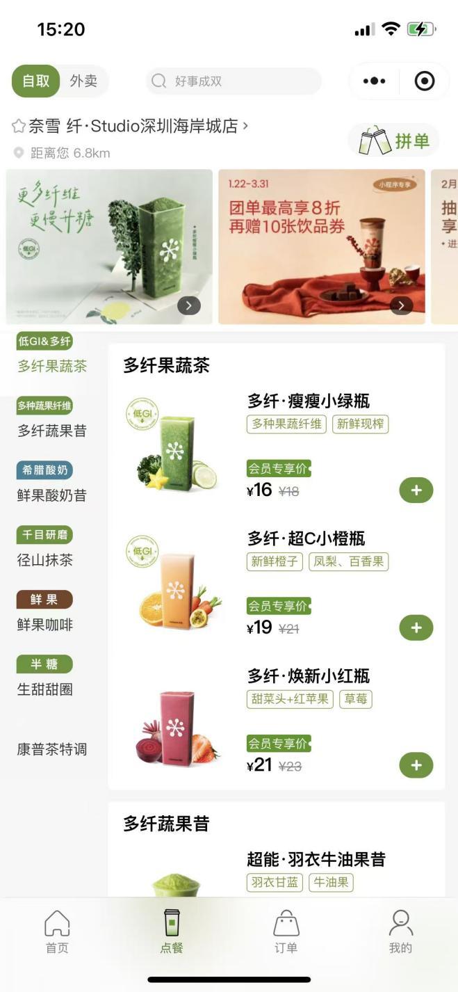 作为奈雪2026年核心战略落地的关键,奈雪纤·Studio店独家上线6款「低GI&多纤」核心产品,涵盖多纤蔬果昔与低GI多纤果蔬茶两大品类,「更多纤维,更慢升糖」精准击中消费者对于健康慢升糖的需求。
