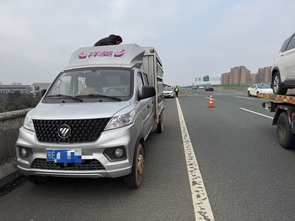 民警吴创一边大声呼喊,一边迅速指挥后方车辆注意避让。待驾驶员安全落地后,他耐心解释:“高速公路上车速快,这样做不仅有危险,更可能引发连环事故,后果不堪设想。”在他的引导下,驾驶员规范开启了警示灯,并将车辆驶至前方收费站安全区域。