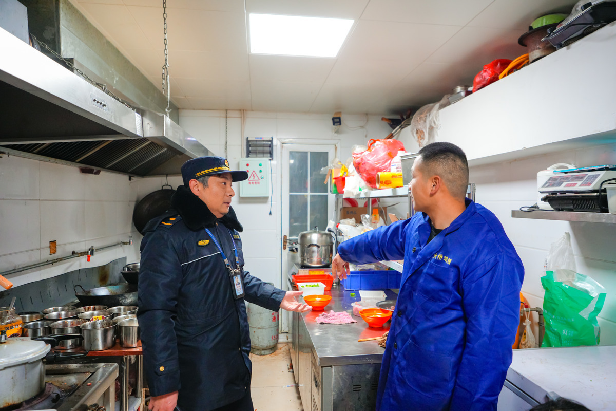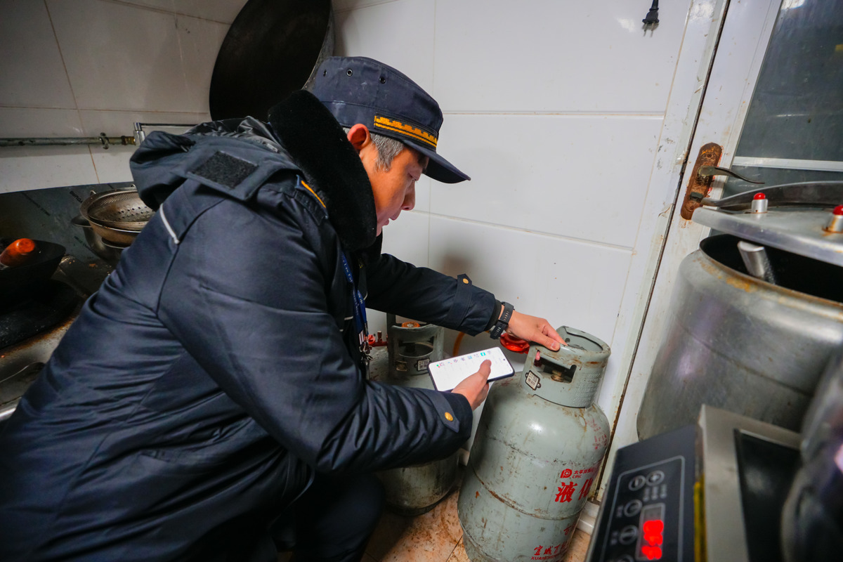 “老板,啥时候回家过年?回家前可别忘了把燃气总阀关紧!”在粮道街网红美食街的一家快餐店里,执法大队六中队执法人员一边检查燃气灶具、连接软管的接口密封性,一边以拉家常的方式叮嘱店主。走进隔壁一家粉面馆,执法人员发现墙角的燃气报警器指示灯无反应,经检查确认设备已损坏。“您这个燃气报警器已失效,请立即更换!”执法人员督促店家当场联系商家更换了全新的燃气安全报警器。
