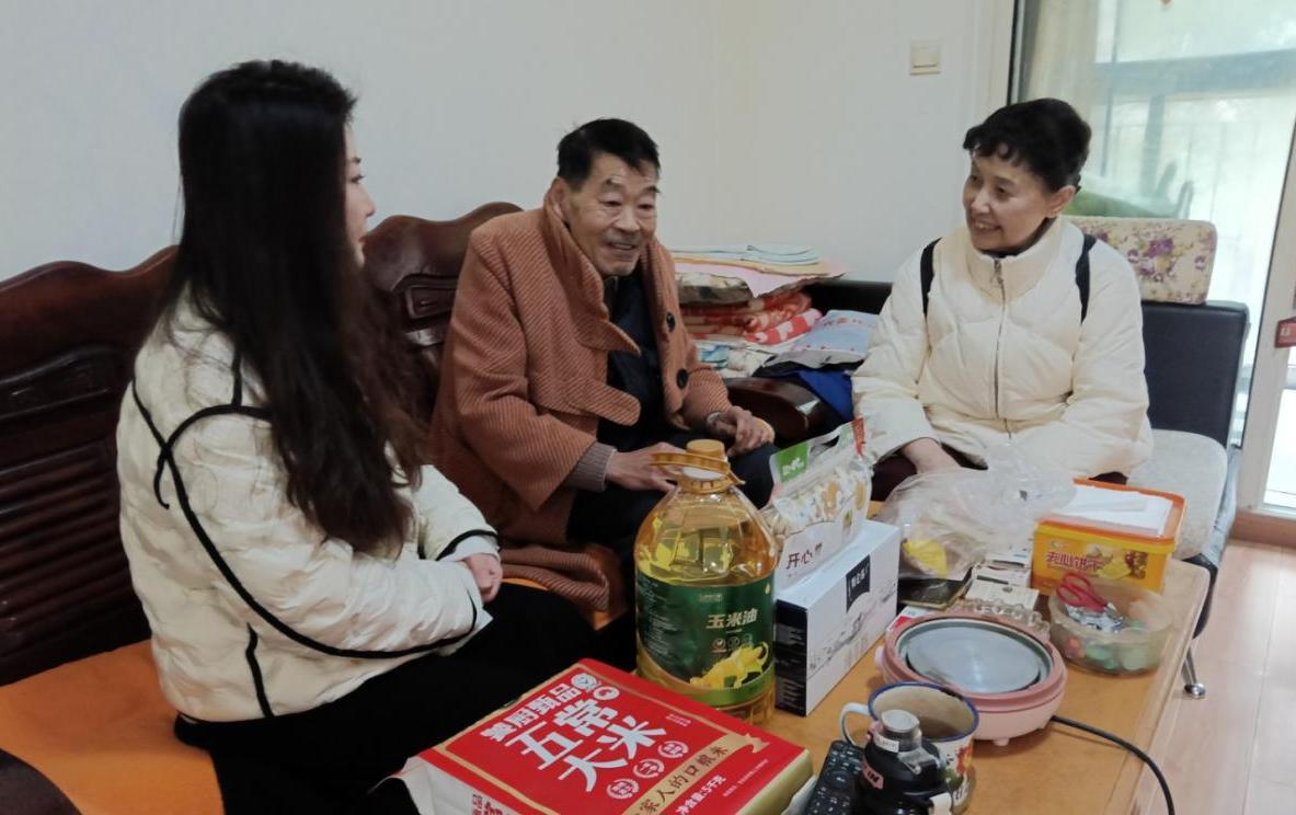 在独居老人家中,李雨嘉仔细查看老人居住环境,关切询问老人饮食起居与慢病管理情况。