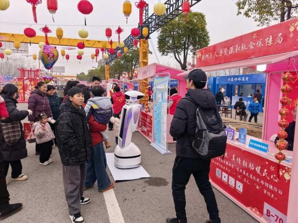 活动现场,智能机器人引起市民围观。市民可通过求职机器人“小智”快速生成职业画像、自动匹配合适岗位、了解最新政策并获得个性化求职建议等,极大提升了求职效率。企业可以让“小智”高效筛选简历、精准对接人选,大幅提升招聘效率。一场由“机器人”完成的打破时间、空间局限的供需匹配,完美成功。来自邾城街的返乡农民工陈先生兴奋地说:“本来是来市集买年货的,没想到用机器人找到了工作,家乡的发展太快了!”