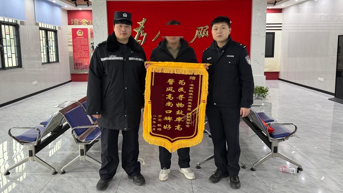 事后,洪先生不仅在朋友圈发文点赞致谢,次日还专程来到冶金街派出所,将一面印有“警风高尚口碑好,为民寻物效率高”的锦旗送到民警手中,对派出所快速响应、为民解忧的高效服务点赞。