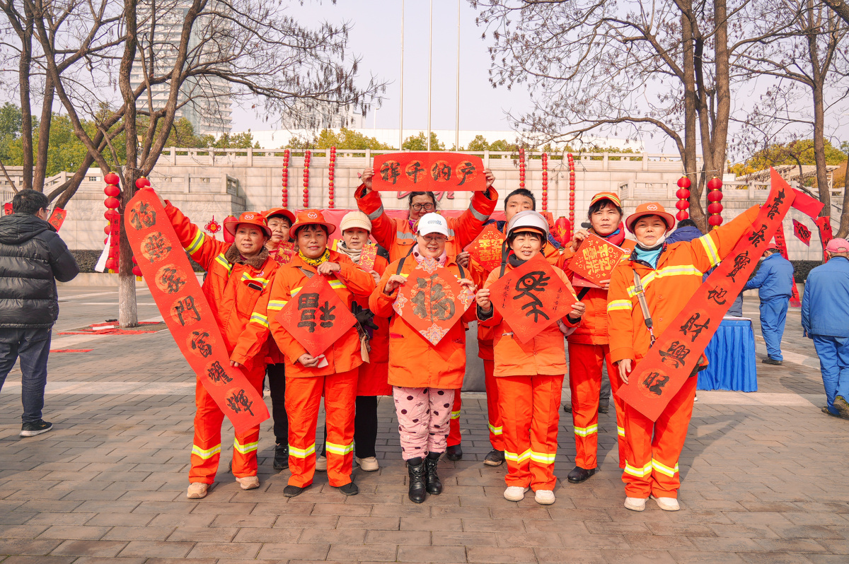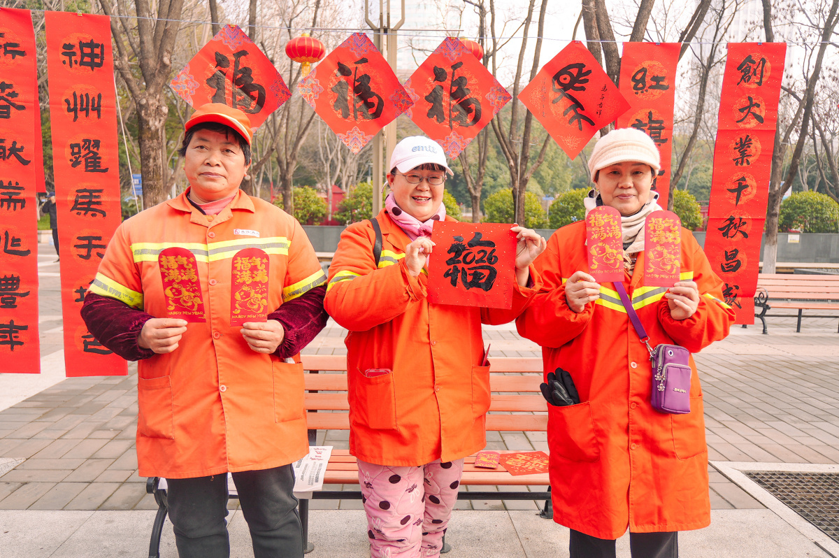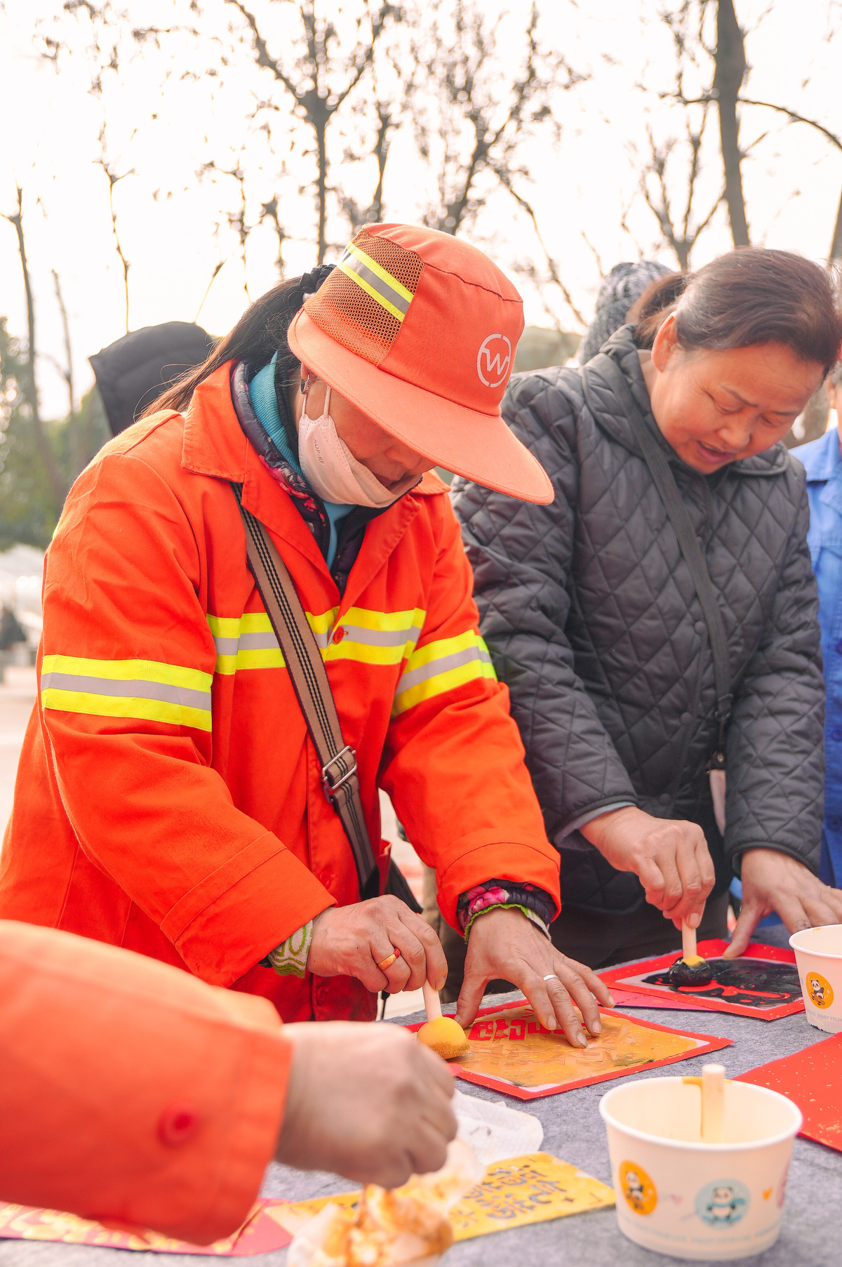 活动现场,大红灯笼高高悬挂,中国结随风摇曳,将洪山广场装点得喜气洋洋。来自武昌区城管执法局中南路清洁队的环卫工人、洪山广场园林养护工人等一线劳动者们齐聚一堂,脸上洋溢着质朴的笑容。