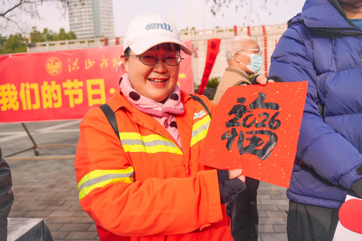 马年新春的脚步愈发临近,江城武汉的街头巷尾已悄然弥漫起浓郁年味。2月11日,洪山广场举办“我们的节日·春节”——“墨香传福暖一线·新春纳吉聚民心”2026年书联迎新春文化活动,以笔墨为媒传递温情,用红纸黑字书写期许,为市民游客和环卫工人提前送上马年新春的美好祝愿。