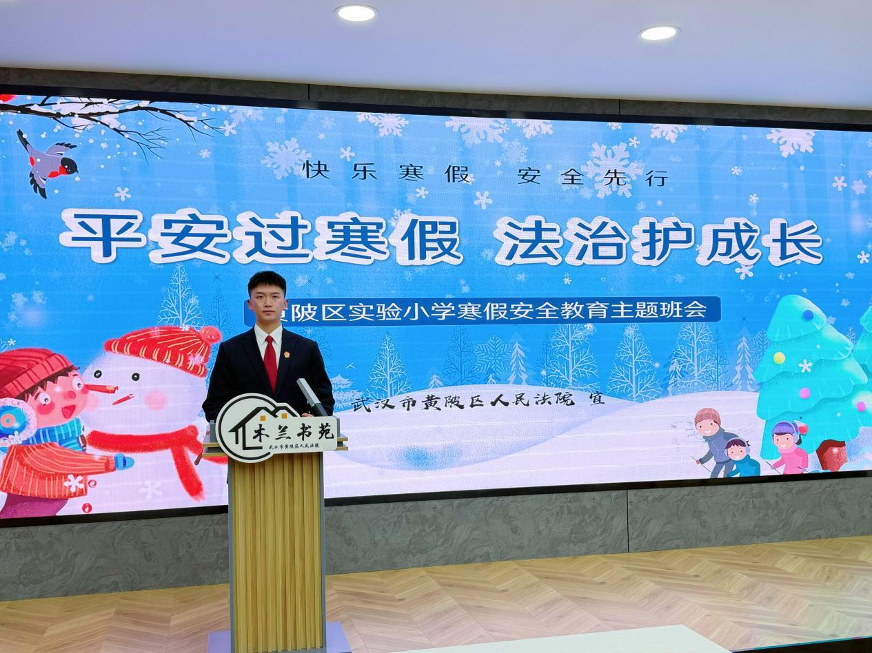 近日,武汉市黄陂区人民法院应邀参加黄陂区实验小学举办的云端散学典礼暨期末家长会。活动中,法院干警胡雪立以“平安过寒假,法治护成长”为主题开展法治宣讲,为全校3000余名师生带来一堂寒假安全法治线上主题班会。