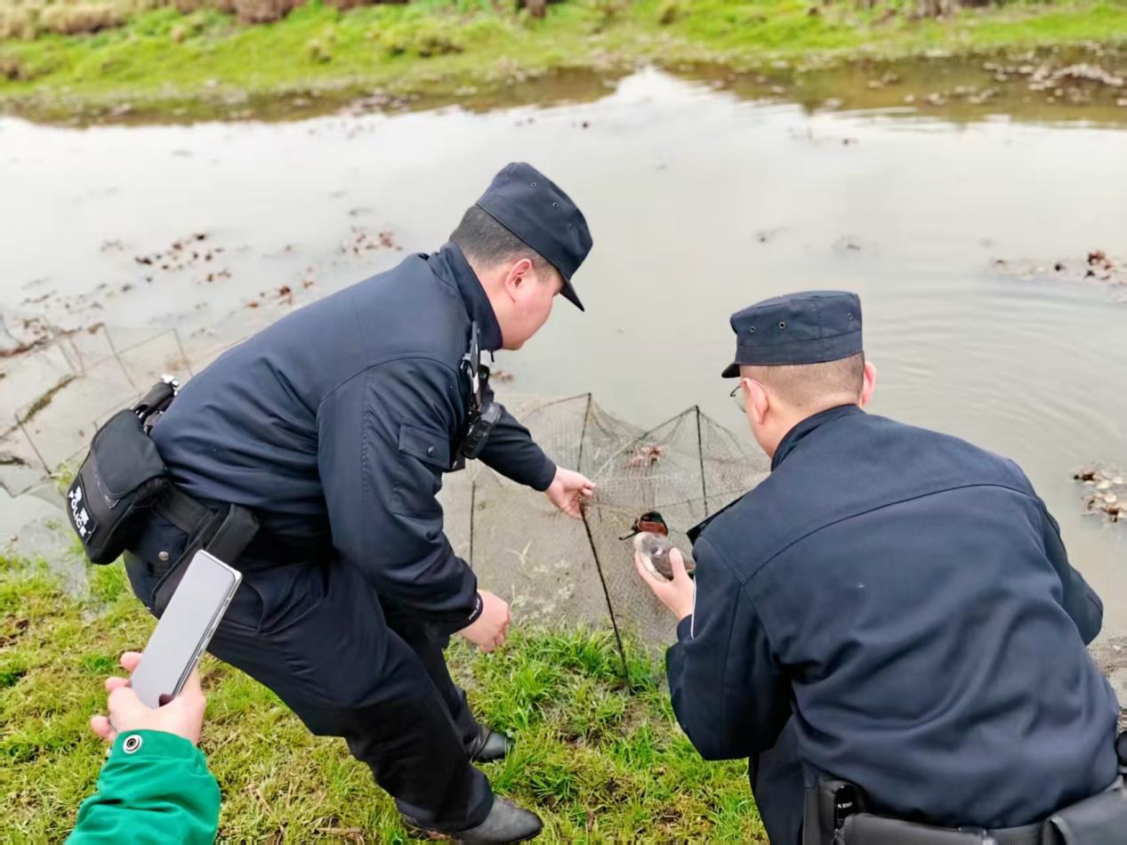 “感谢你们为保护湿地做出的贡献。”付麟对报警的两位观鸟爱好者表示赞许。两人回应,作为爱鸟之人,保护鸟类是她们义不容辞的责任。