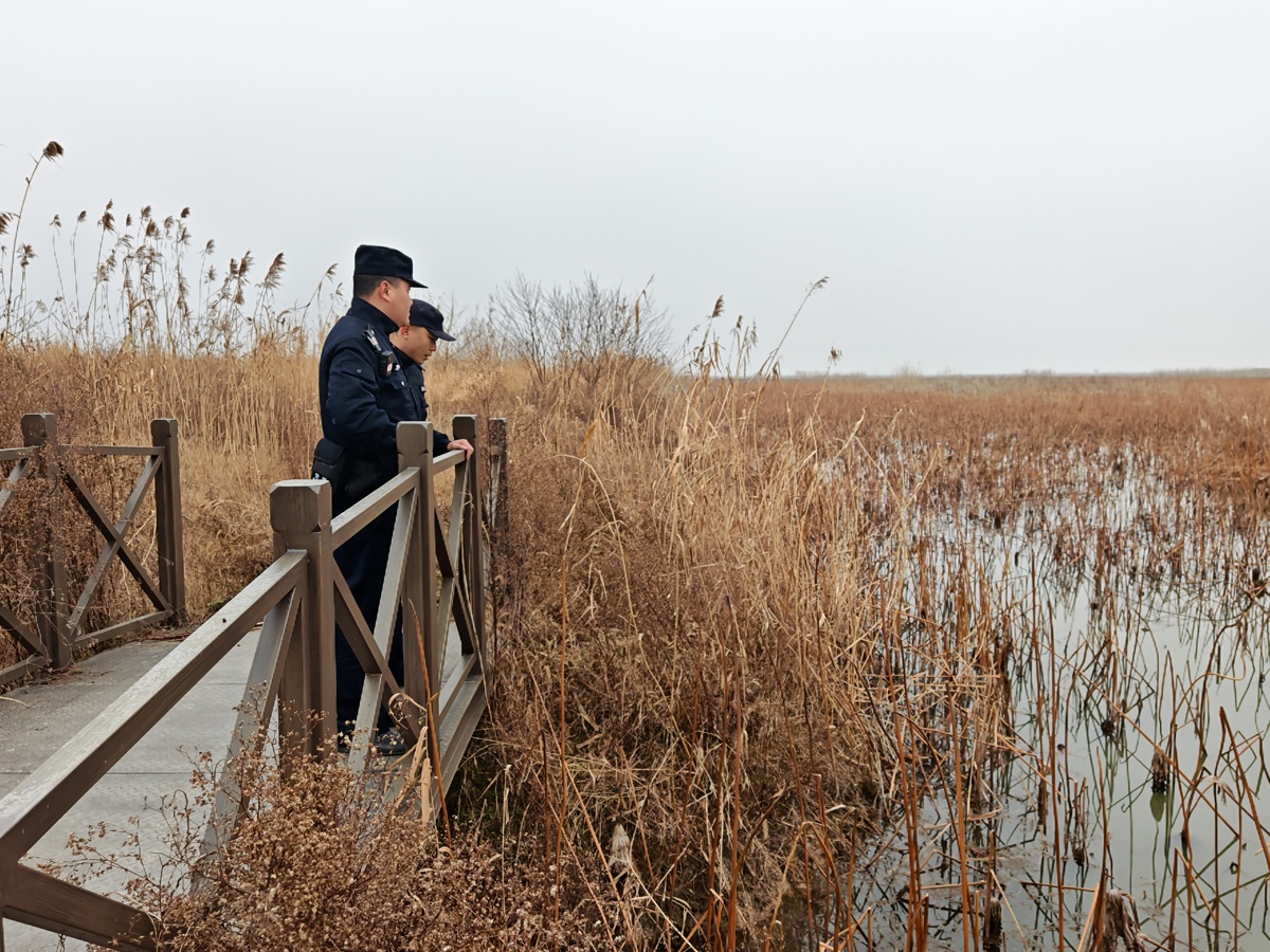“守护候鸟,早已成了我们的习惯。”付麟一边走,一边警觉地环顾四周。三人的脚步轻轻落在湿地木栈道上,生怕惊扰不远处栖息的鸟群。“即便天寒地冻,气温降到零下,我们依然坚持步行巡查。只有深入芦苇丛,才能发现那些潜藏的隐患。”