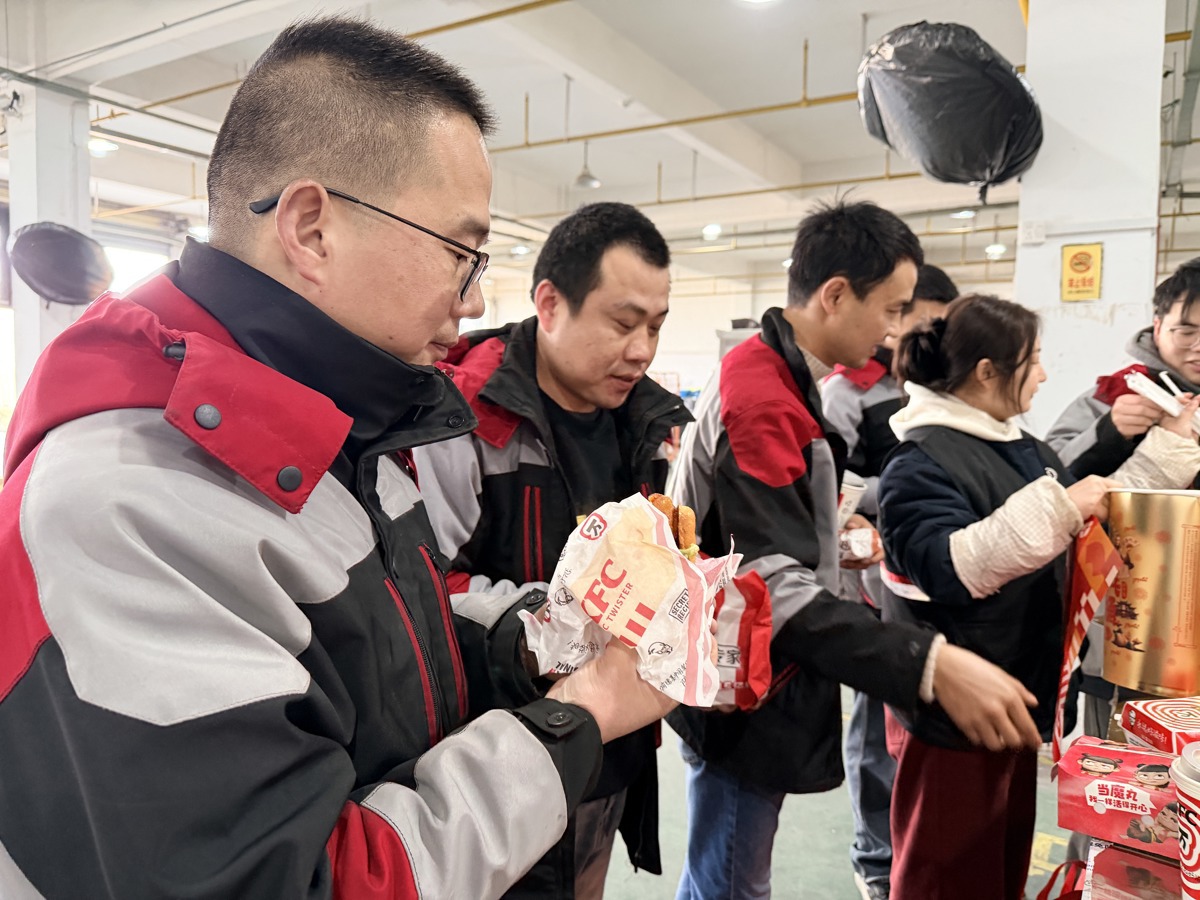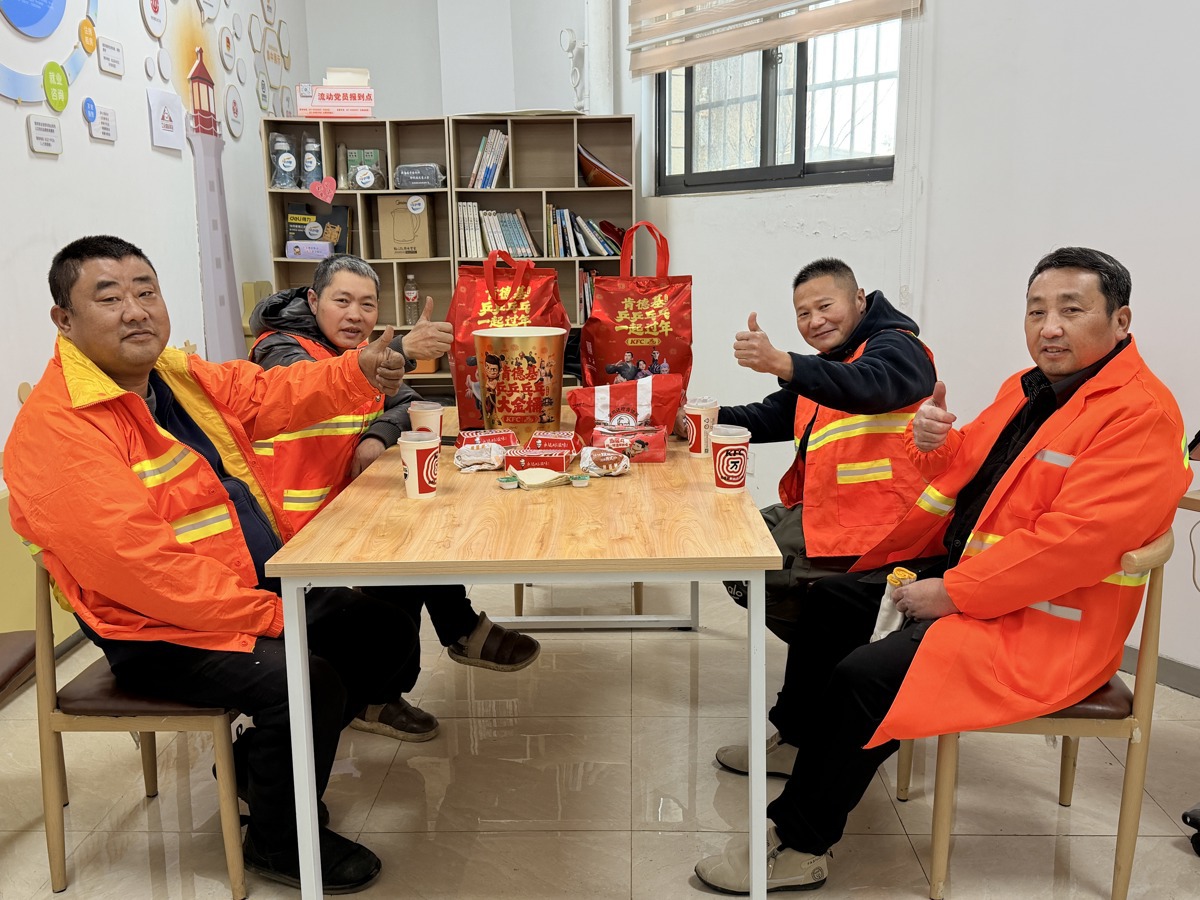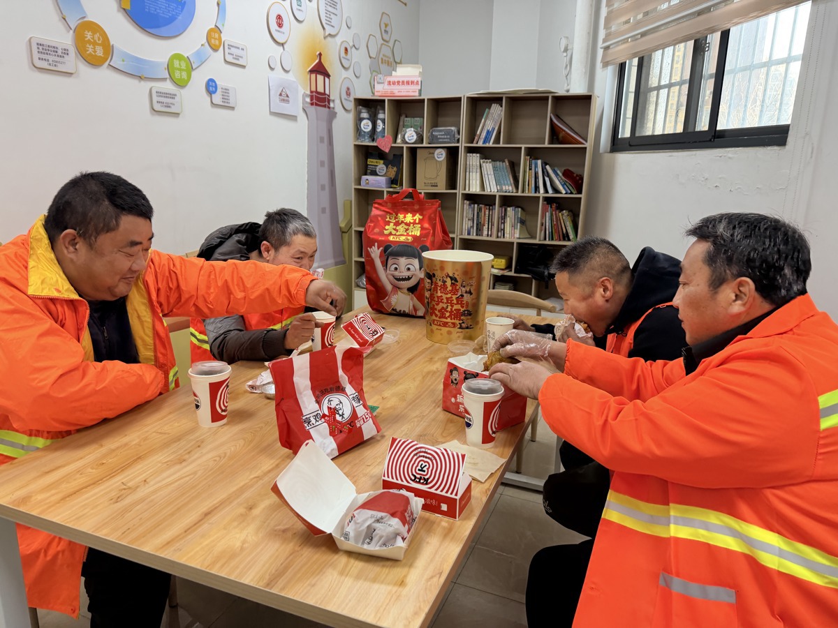 2月12日,武汉市东西湖区长青街兴达社区顺丰快递点洋溢着一片温馨与欢笑。新闻联合武汉肯德基开展的“致敬劳动者·爱心送年饭”第九季活动走进长青街,与武汉市东西湖区长青街两新组织综合党委“暖新课堂”特色服务品牌深度融合,为坚守一线的快递小哥和环卫工人们送上一份份热气腾腾的肯德基“乒乒乓乓大金桶”爱心午餐,以舌尖上的年味致敬城市守护者。