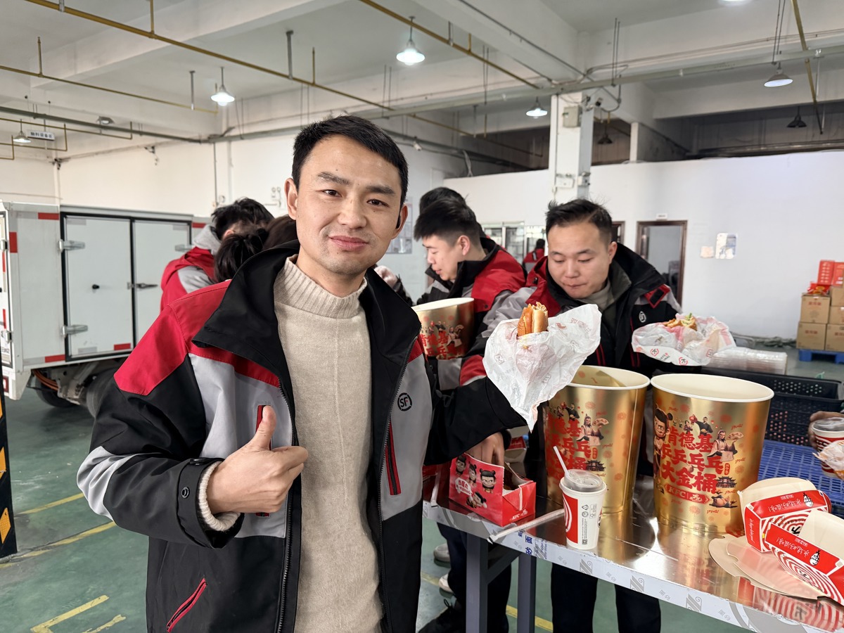 39岁的陈作勤是东西湖本地人,扎根快递一线十余年。今年春节,他和20余名同事选择“不打烊”,继续奔跑在配送路上。“这段时间高峰期慰问、吃饺子、送年饭……一波接一波的关心,让我们觉得再辛苦也值得。”他笑着说,虽然不能休息,但被惦记的感觉很踏实。