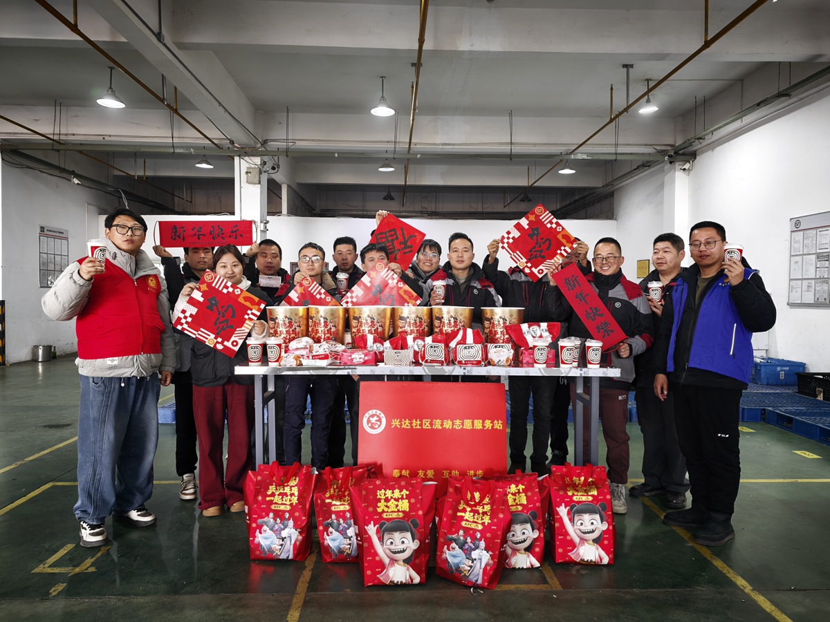 中午时分,兴达社区工作人员和志愿者带着一份份爱心餐走进快递站点,送餐间隙的顺丰快递员王亮亮接过爱心午餐,脸上写满惊喜。24岁的他来自河南信阳,在东西湖从事快递工作已有三年。“上次社区组织大家一起吃饺子,热热闹闹的,特别开心。没想到今天又收到肯德基年饭,心里真暖。”王亮亮说,他已买好14号回家的车票,这份提前吃到的“年饭”让他带着更多牵挂返程。