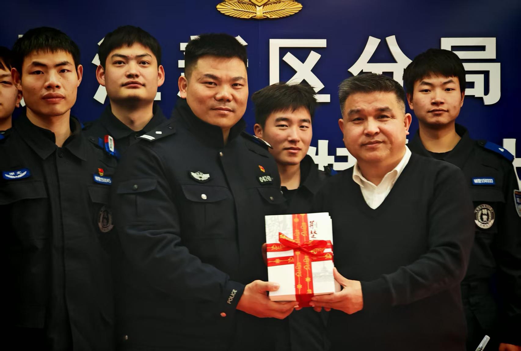 其间,省直分会副会长兼秘书长郭永安还将自己著作《荆楚警事》捐赠给大队阅览室,以丰富特警队员们的业余文化生活。特警队员们手捧散发着墨香的春联和书籍,脸上洋溢着笑容。