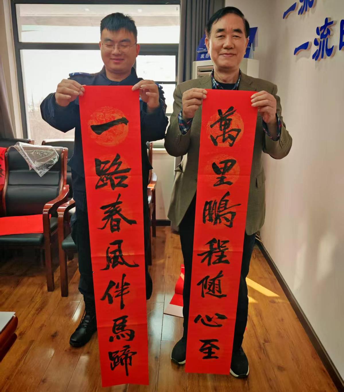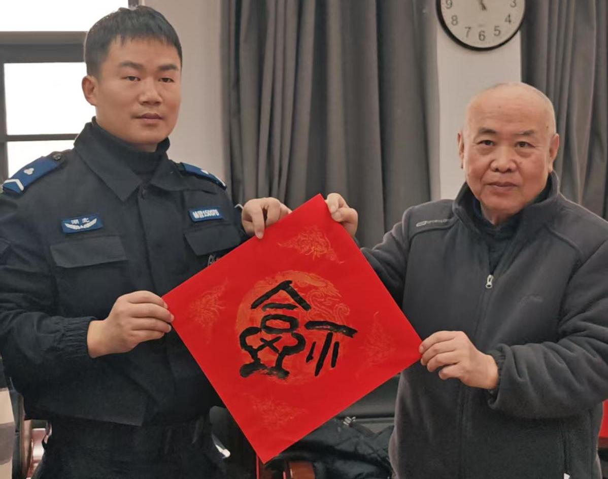 “这副‘福’字送给你,祝你和家人新春快乐,平安健康!”省直警营书法家们将精心创作的春联和“福”字赠送给特警队员,红纸黑字间流淌着温暖的情谊。此次进警营活动,省直警营书法家共书写春联80余副、100张福字。