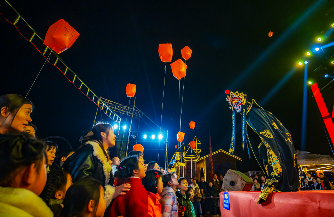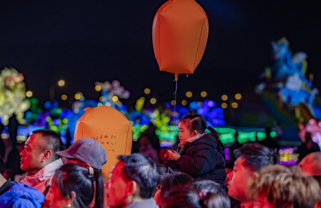 表演结束,广场中央燃起篝火,游客手拉手围成圈跳舞。篝火旁,近百盏写满心愿的孔明灯同时升起,孩子画了匹小马,老人写下“全家平安”。“愿新年,胜旧年。”李先生牵着妻子和女儿,目送灯火升起。