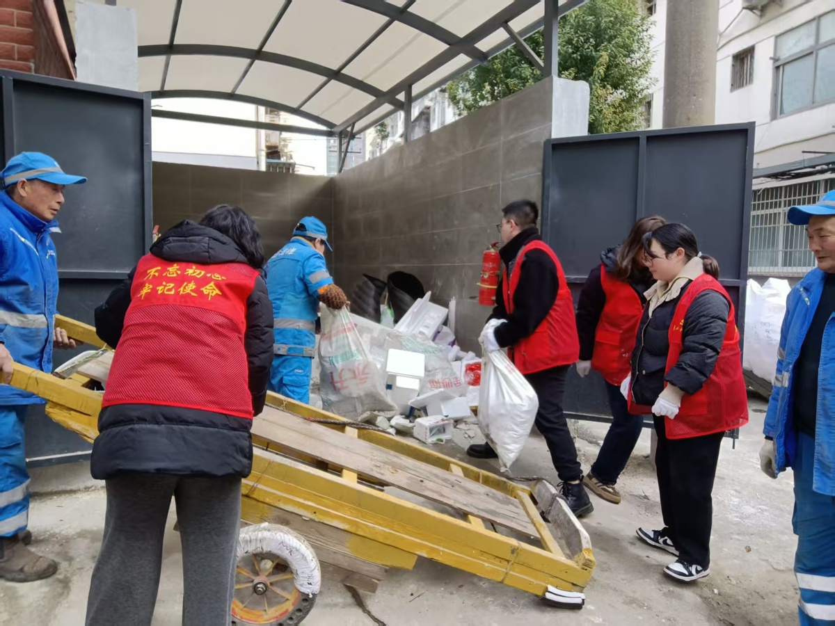 在水果湖街道茶港社区,街道组织社区工作者携手湖北省审计厅下沉党员及20余人,对洪山侧路老旧小区的垃圾集中清运站和楼道堆积物进行了全面清理。