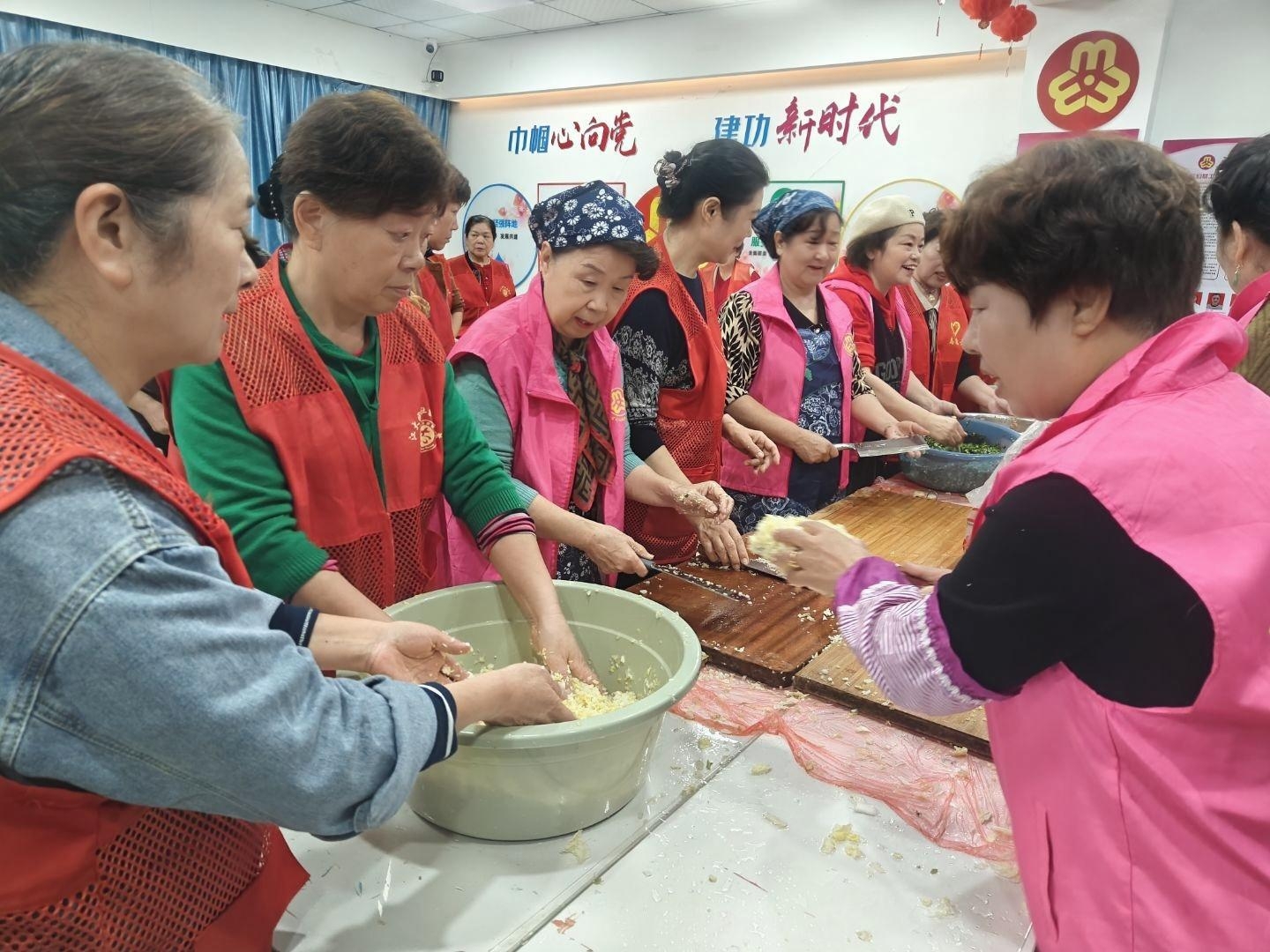 活动现场暖意融融,欢声笑语此起彼伏。巾帼志愿者们围坐在一起,和面、擀皮、调馅、包饺子,分工协作、井然有序,在忙碌中尽享邻里相聚的欢乐。现场包出的饺子形态各异、风味独具,既有南方皮薄馅嫩的精致手法,也有北方皮厚筋道的传统包法。志愿者们一边巧手包饺子,一边亲切交谈:“饺子各有各的做法,南北风味聚在一桌,就是最实在的团圆。”朴素的话语间,是民俗技艺的交流,更是邻里情谊的深度交融。一个个圆润饱满的饺子在指尖成型,将对新年的美好期许尽数包裹其中。