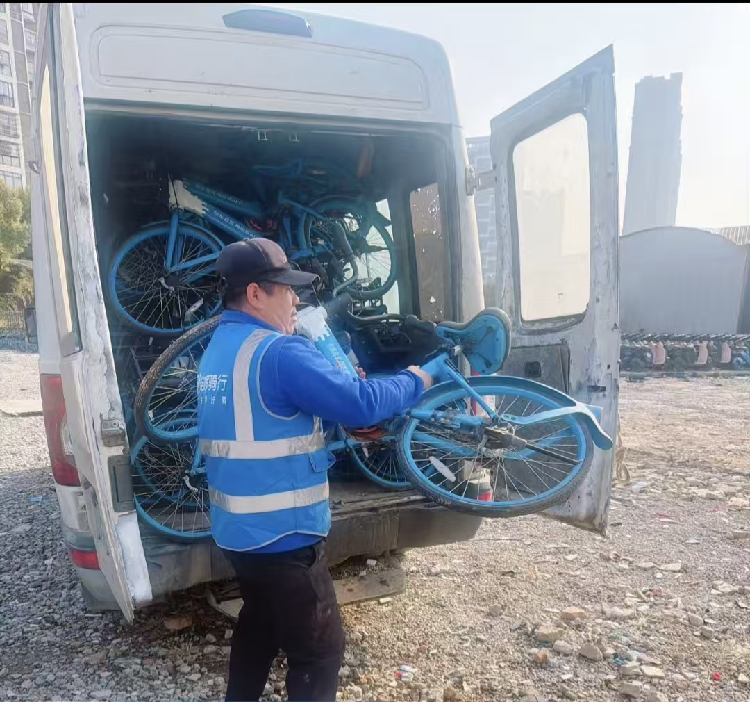 运维人员清运回收单车