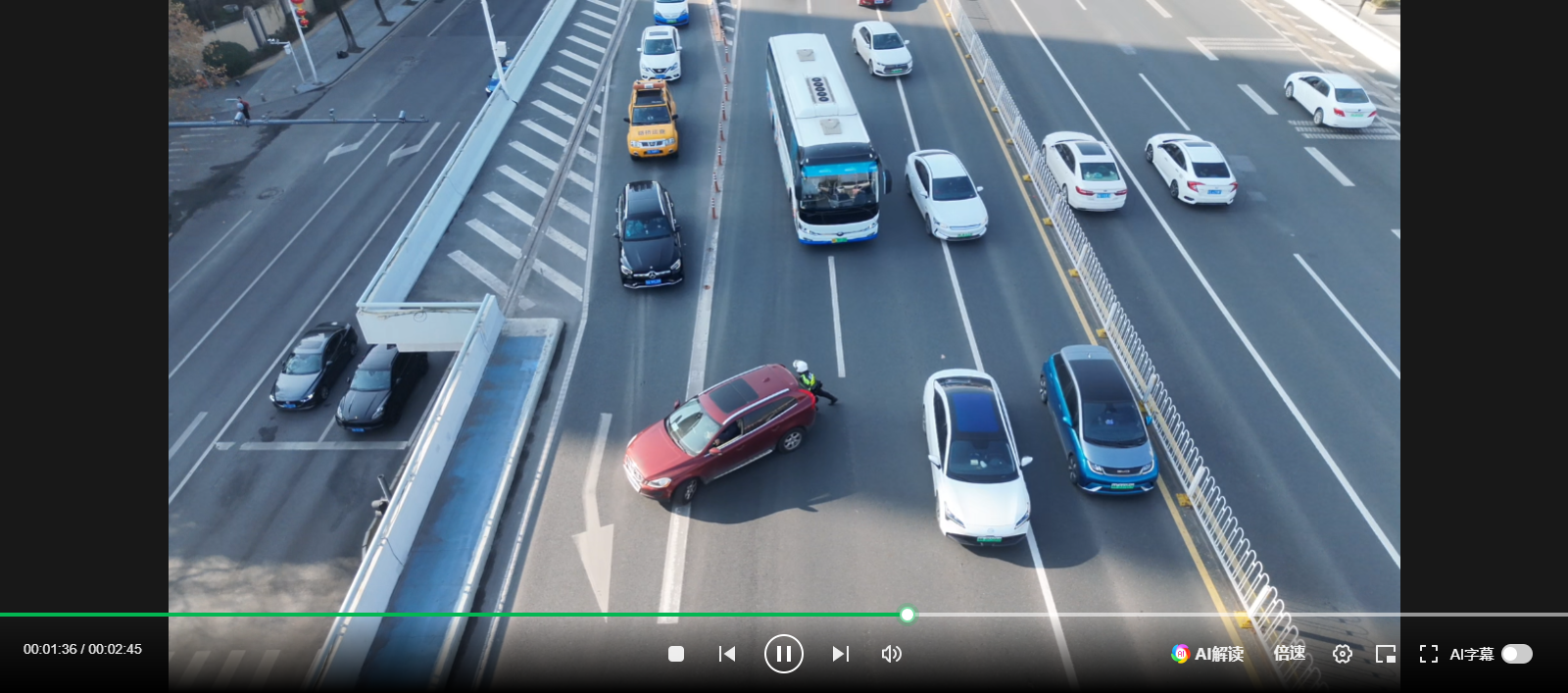 武汉市公安局江岸区分局交管大队立即启动春节返程应急处置预案:地面,调度距离最近的快骑警力火速奔赴现场;空中,启用“武汉交警无人机飞控平台”,指派就近的002号无人机紧急升空,先行开展空中侦察与态势研判。